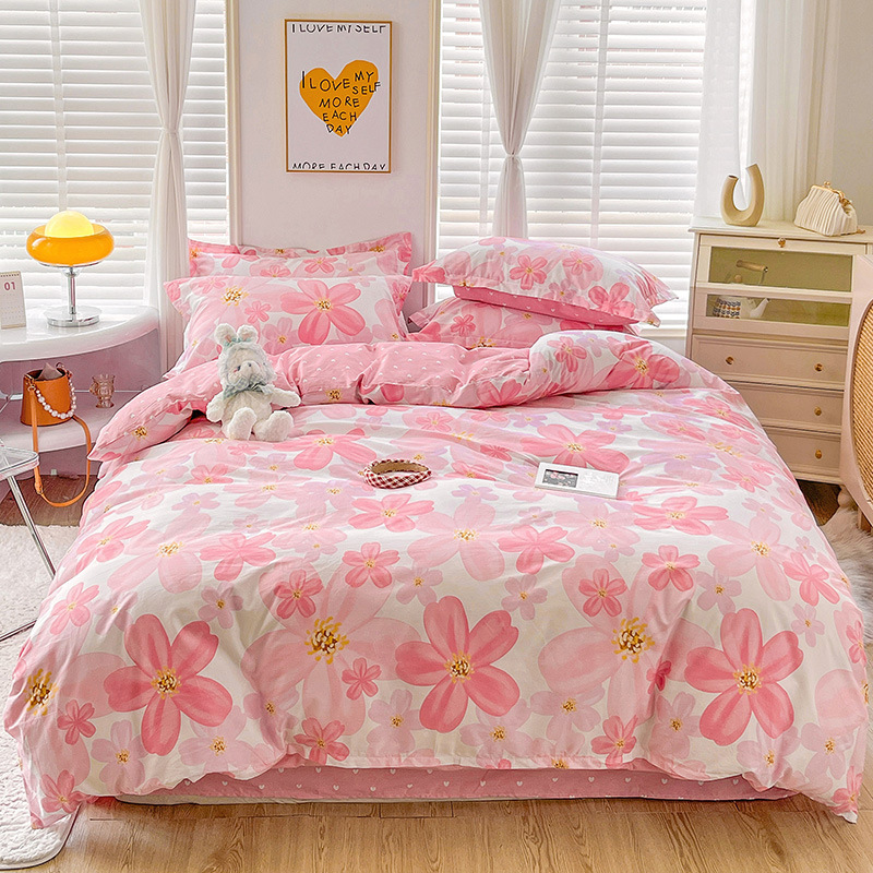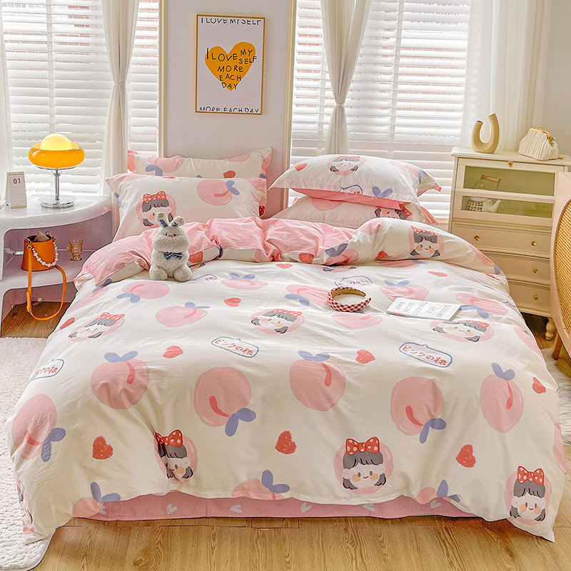 Size specifications: 1.2 bed three-piece set (quilt cover 150 x200),1.5 bed four-piece set (quilt cover 180 x220),1.8 bed four-piece set (quilt cover 200 x230),2.0 bed four-piece set (quilt cover 220 x240)