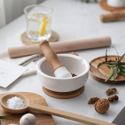 Combination: mashing bowl + masher + bamboo holder