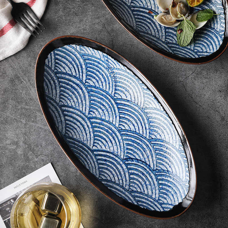 Color: 11-inch egg shape fish dish-sea damaskeen