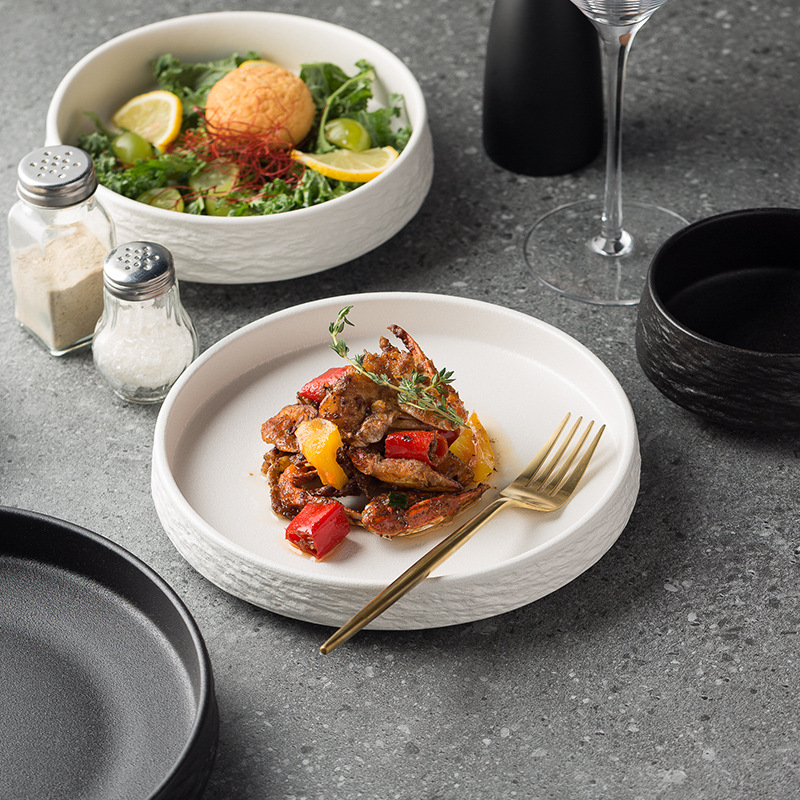 Color: stone pattern deep plates frosted white 18cm, stone pattern shallow plate frosted white cm, stone pattern shallow plate frosted white cm, stone pattern drawstring rice bowl frosted white 11.3, stone pattern deep plates Frosted Black 18cm, stone pattern shallow plate Frosted Black cm, stone pattern shallow plate matte black cm, stone pattern drawstring rice bowl matte black 11.3
