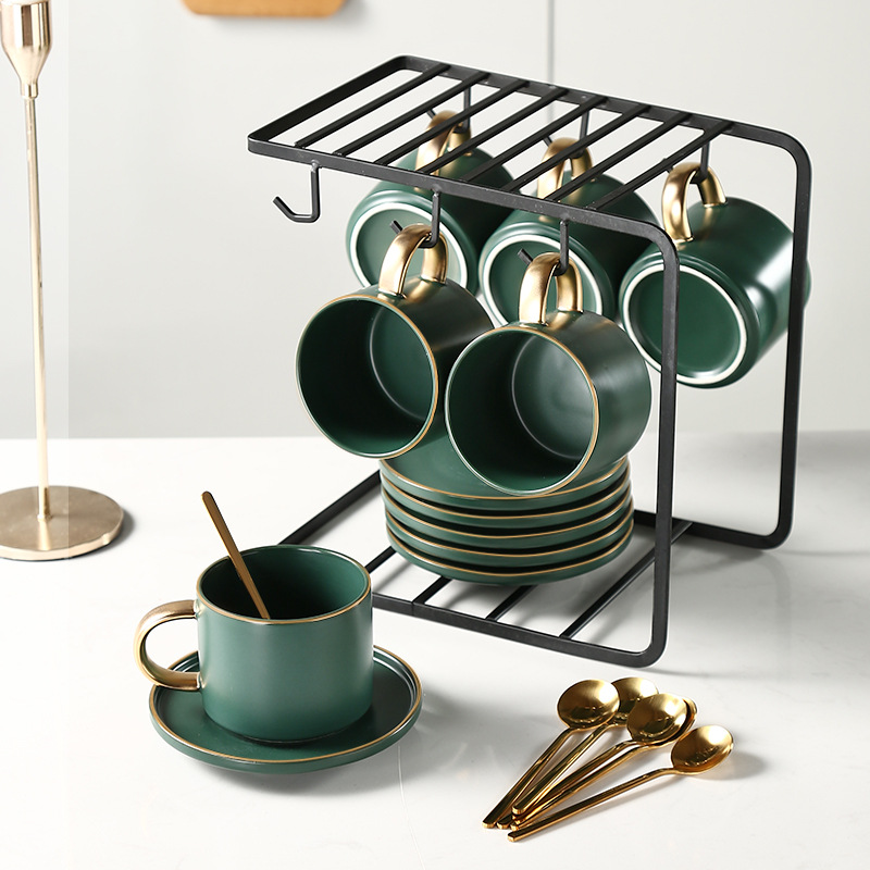 Emerald—6 cups, 6 saucers, 6 scoops + cup holder (gift box)