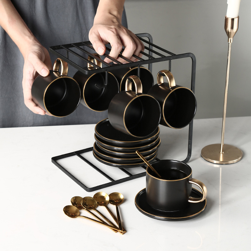 Starry Sky Black—6 cups, 6 saucers, 6 scoops + cup holder (gift box)