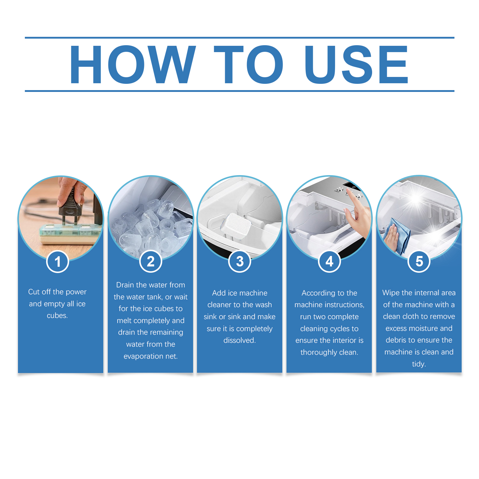 Our ice machine cleaning tablets contain sodium percarbonate and food salt. It can effectively remove dirt from the internal pipes and keep the equipment running efficiently. Eliminate odors and ensure the pure taste of each piece of ice. The way to use it is simple: cut off the power and empty all the ice. Drain the water from the tank or wait for the ice to melt completely to drain the remaining water from the evaporation net. Add the ice maker cleaner to the sink or sink and make sure it dissolves completely. According to the machine instructions, two complete cleaning cycles are run to ensure a thorough cleaning of the interior. Wipe the internal area of the machine with a clean cloth to remove excess water and debris and ensure that the machine is clean and tidy. It can quickly dissolve, deeply clean pipes and interiors, and reduce dirt residue.