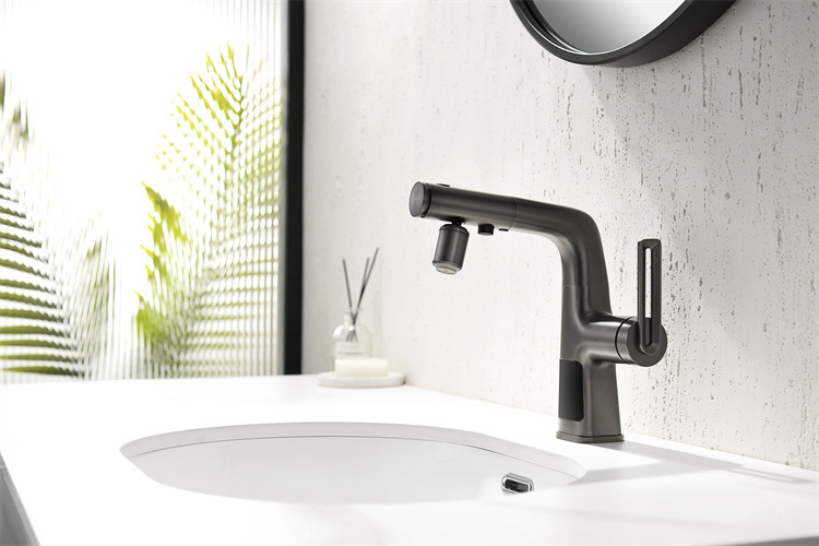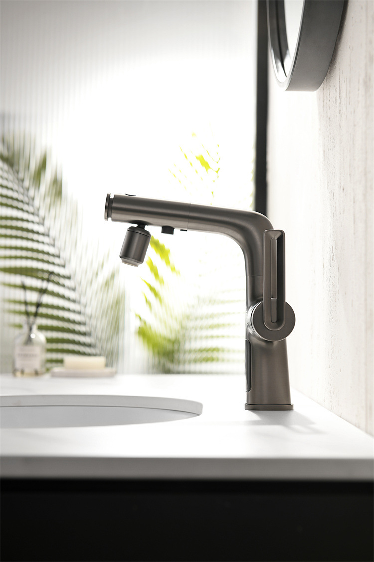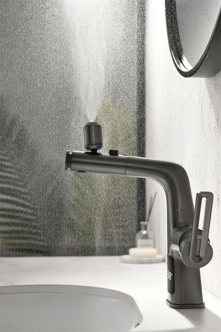 Household Digital Display Copper Spray Kettle Faucet Splash Lift Gun Gray
