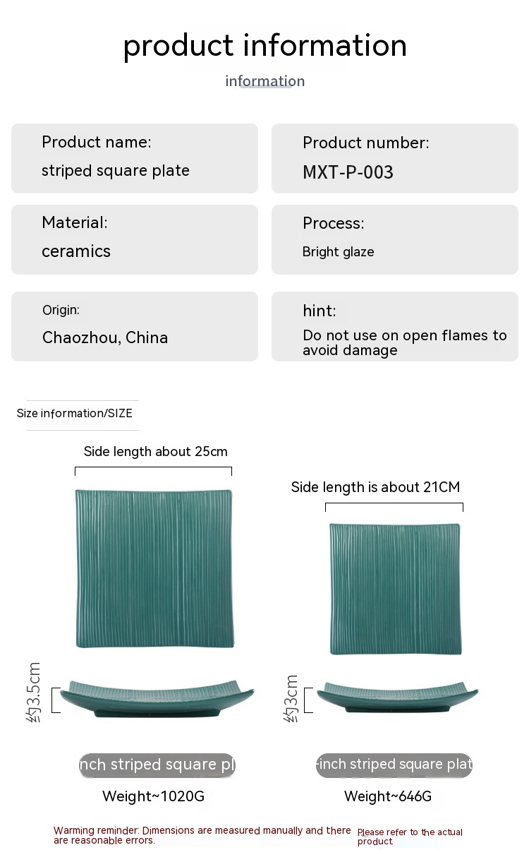 Color: Rocker square plate (green), rocker square plate (blue), rocker square plate (yellow), rocker square plate (red), rocker square plate (pink), rocker square plate (white), rocker square plate (black),8-inch striped square plate (green),8-inch striped square plate (blue),8-inch striped square plate (yellow),8-inch striped square plate square plate (red),8-inch striped square plate square plate (pink),8-inch striped square plate square plate (white),8-inch striped square plate square plate (black),10-inch striped square plate square plate (green),10-inch striped square plate square plate (blue),10-inch striped square plate (yellow),10-inch striped square plate square plate (red),10-inch striped square plate square plate (pink),10-inch striped square plate square plate (white),10-inch striped square plate square plate (black), green striped long board-large, blue striped long board-large, yellow stripe long board-large, red stripe long board-large, pink stripe long plate-large, white stripe long board-large, black stripe long board-large