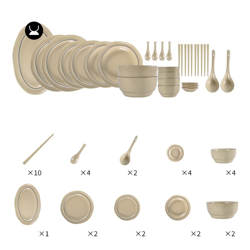 Color classification: Dipping dish, small spoon, rice bowl, chopsticks (1 box/5 pairs), soup spoon, soup bowl, small 8-inch vegetable dish, large 10-inch vegetable dish, 8-inch sauce vegetable dish, 12 inch fish dish, two person set, four person set