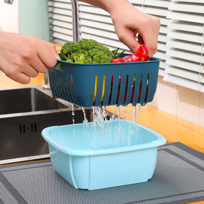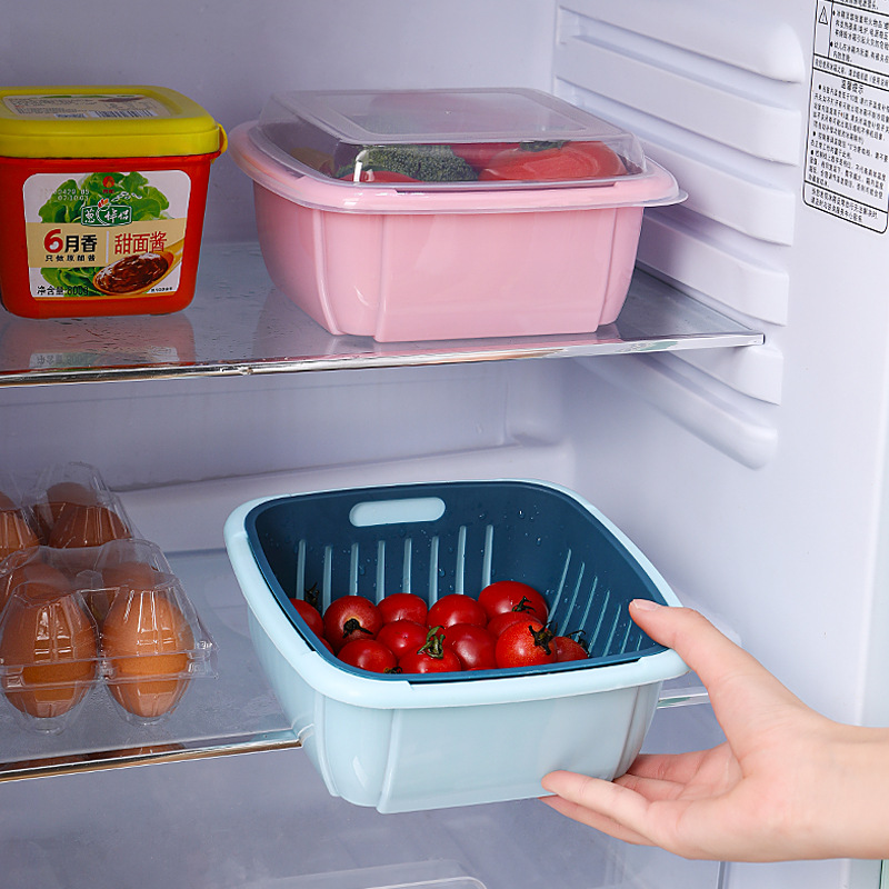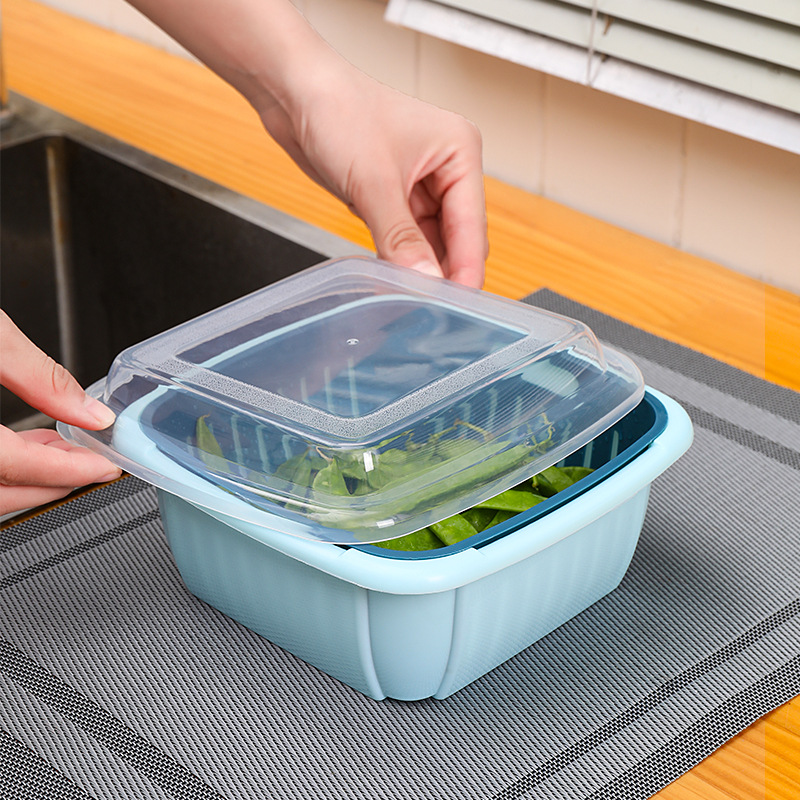 Function: Double-layer drain basket with lid, clean and drain both fruits and vegetables