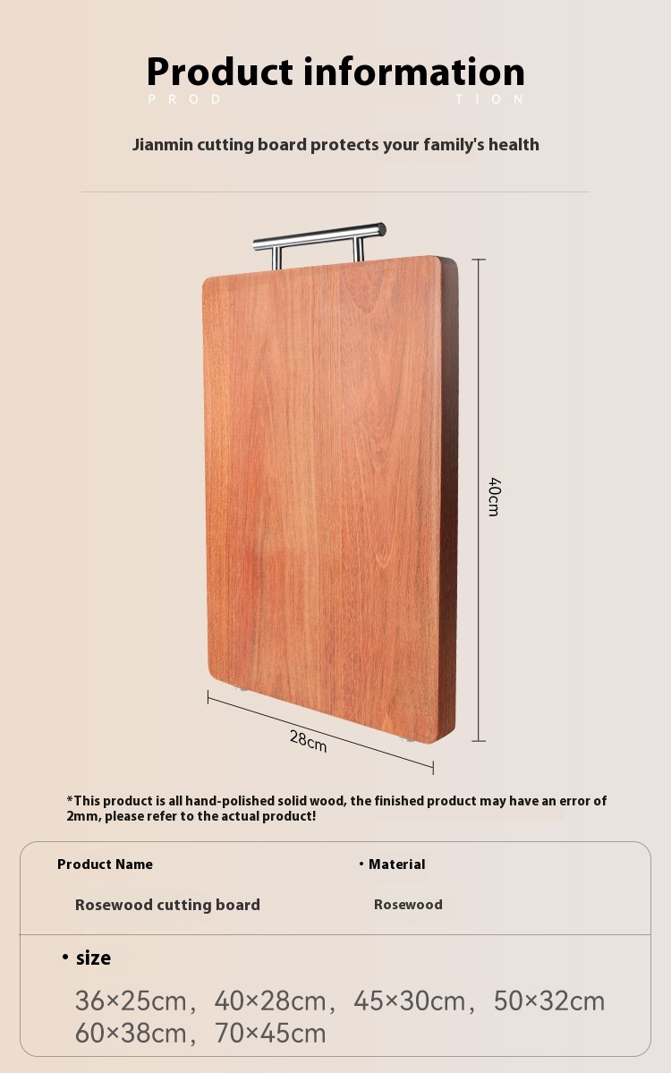 Specifications: Rosewood full wooden cutting board 36*25*2.5, Rosewood full wooden cutting board 40*28*2.5, Rosewood full wooden cutting board 45*30*2.5, Rosewood overall wooden cutting board 50*32*2.5, rosewood overall wooden cutting board 60*38*2.5, Rosewood overall wooden cutting board 70*45*2.5