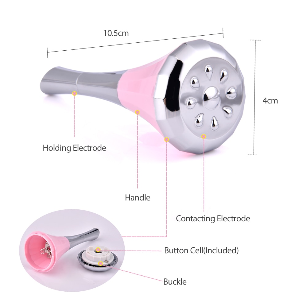 Material: ABS Color: White/Pink(Optional) Vibration Frequency: 10,000RPM Power Supply: 1*DC3V LR44 CR2032 Button Cell Battery(Battery is Included) Size: 10.5*4*4cm