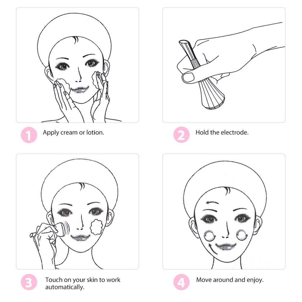 1. The bottom lead-in instrument, the top electrode part of the big round head, can be used as a beautiful eye pencil, no dead corners on the whole face, lift massage 2. Lighten the stains and improve fine lines 3. Vibration massage to promote blood circulation 4. Brighten skin tone and firm skin 5. Aids the absorption of essence lotion and refines pores
