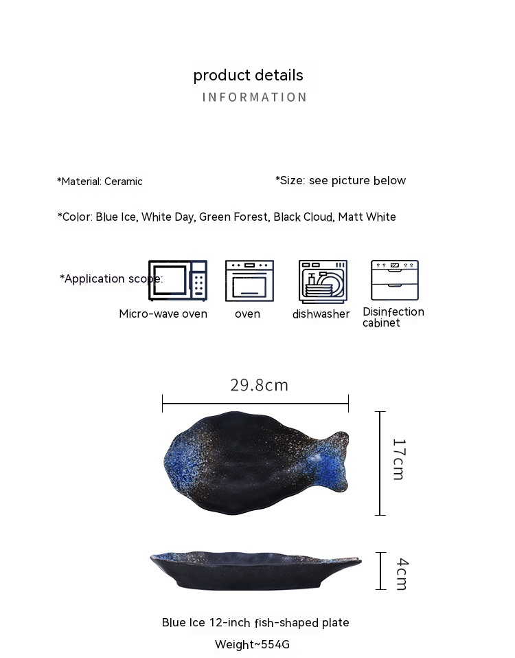 Color: 12-inch fish dish (ice blue),12-inch fish dish (daytime),12-inch fish dish (Green Forest),12-inch fish dish (Twilight cloud),12-inch fish dish (matte white)