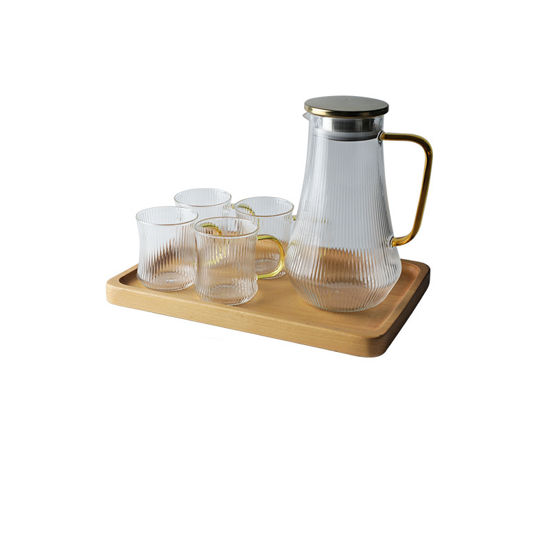 H: Vertical stripes water bottle 1500ml+four cups+tray