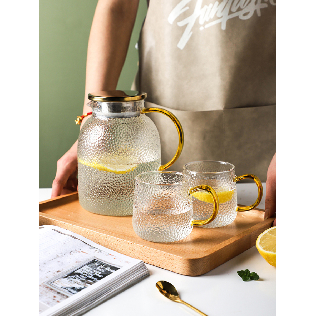 G: Hammer pattern water bottle 1800ml+four cups+tray