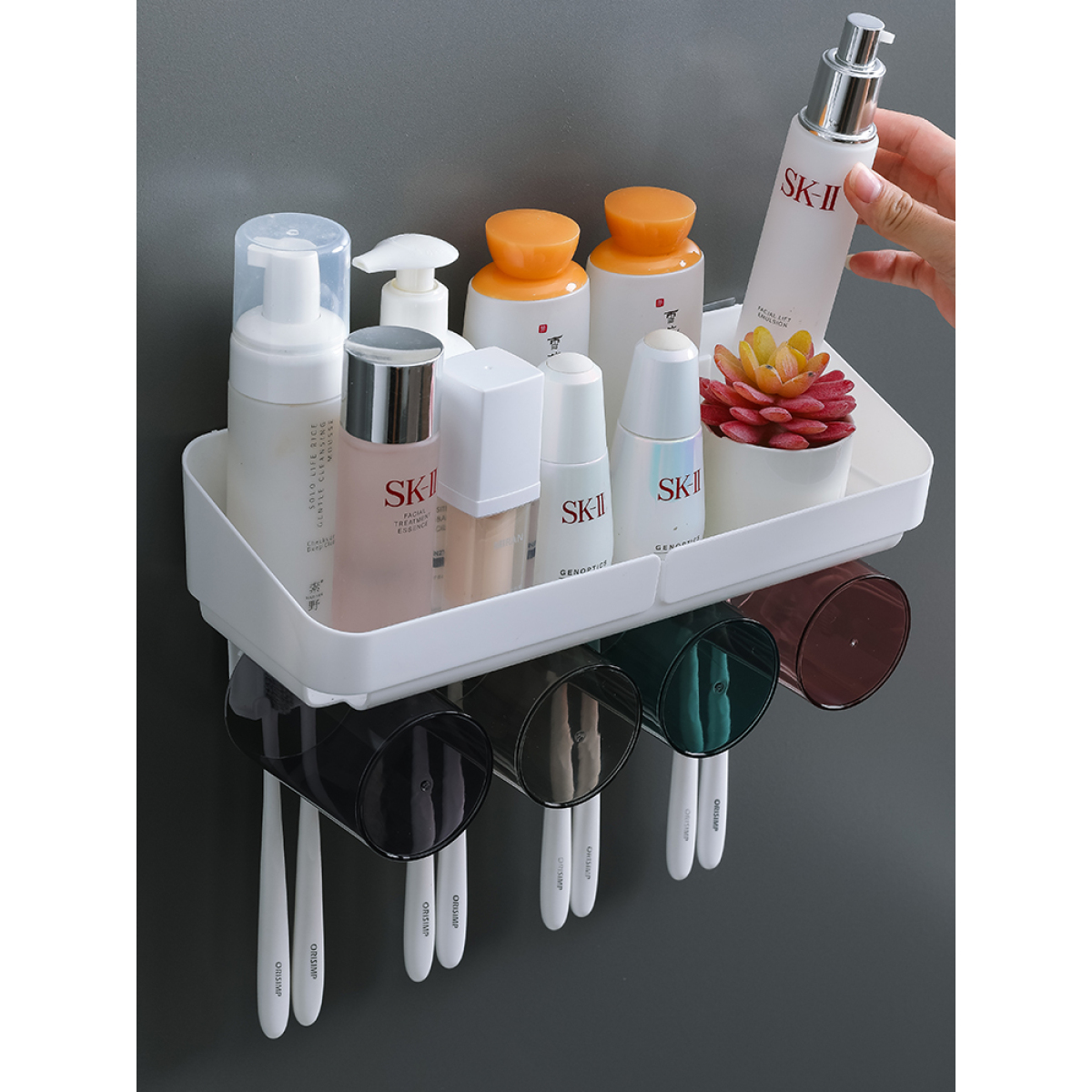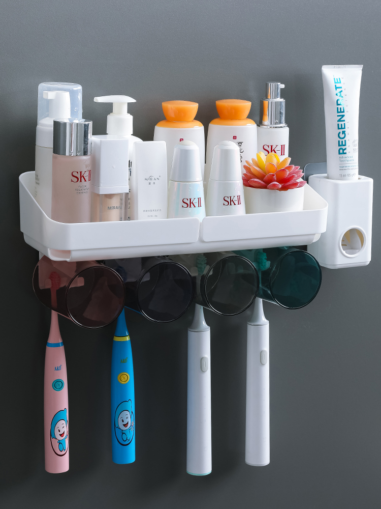 F:【Four cups + toothpaste squeeze artifact】Toothbrush rack
