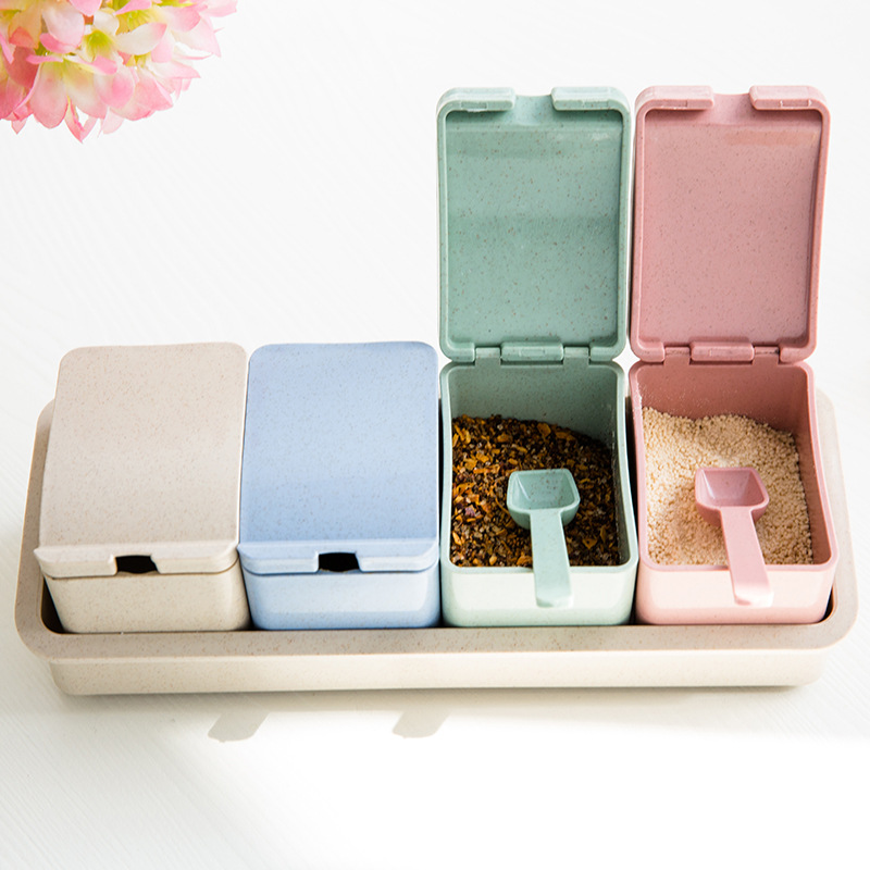 Specification: A: waterproof and moisture-proof seasoning box with spoon, B: wheat straw with spoon, C: wheat straw can rotate four grids