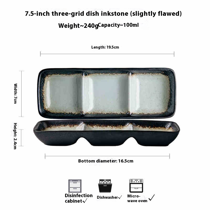 Color classification: 7.5-inch three-grid sauce dish-ink stone x
