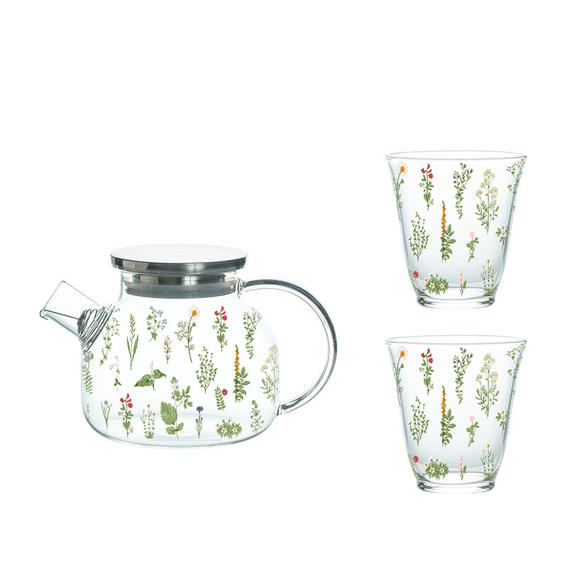 Style13: Xiaocailing Glass Tall Pot + Two Handy Cups