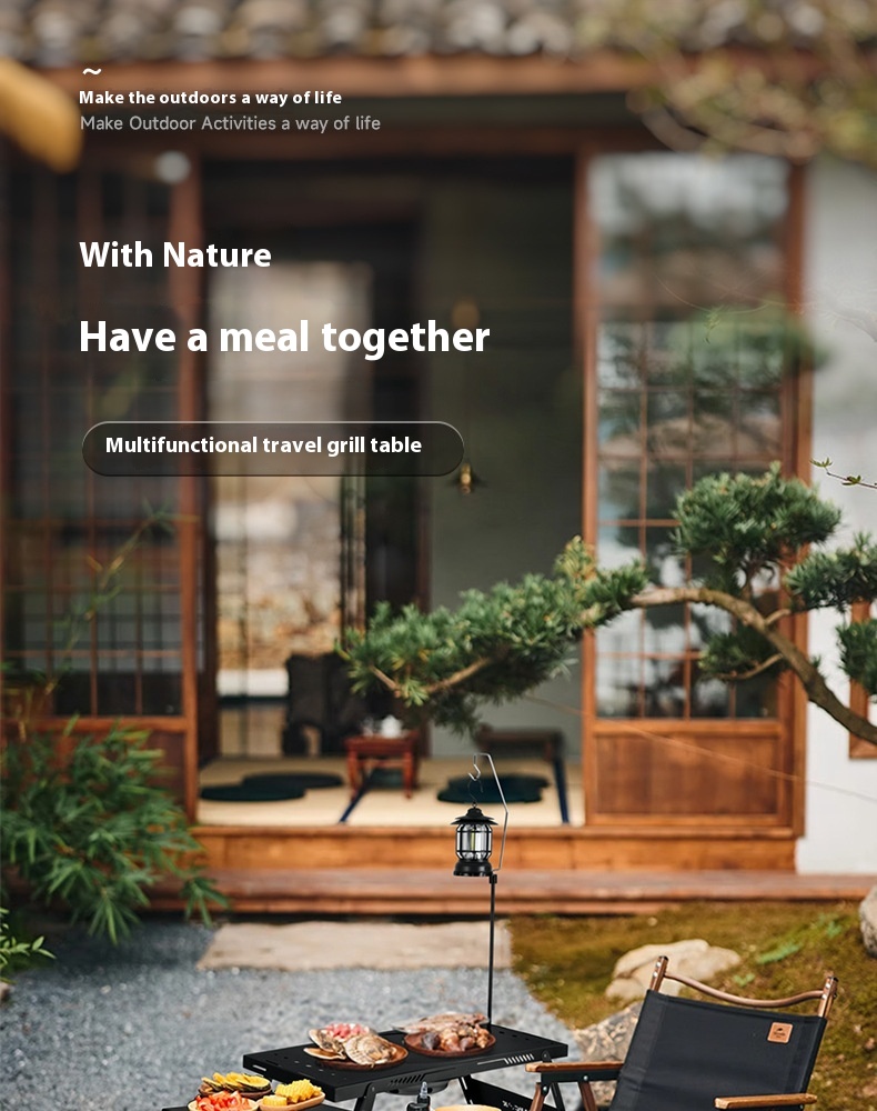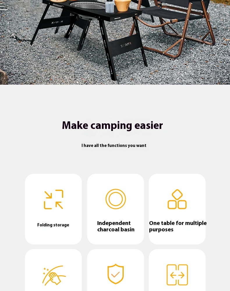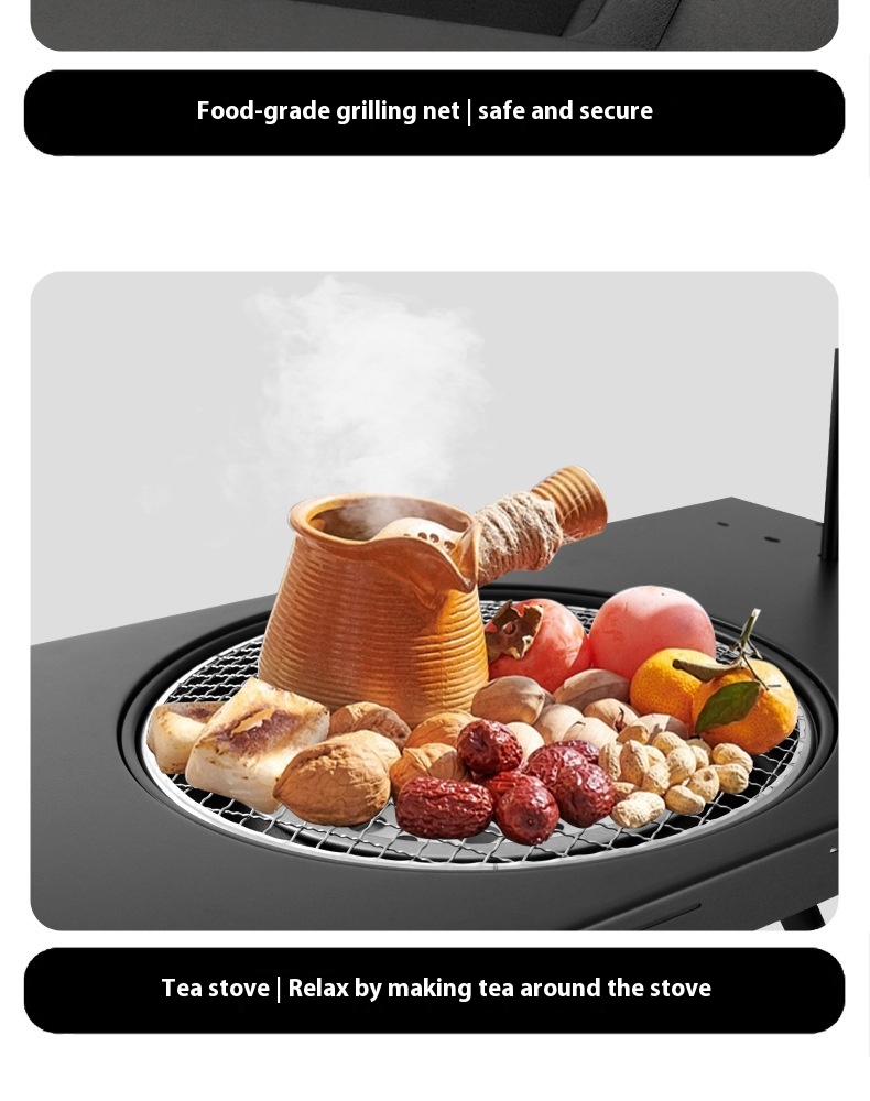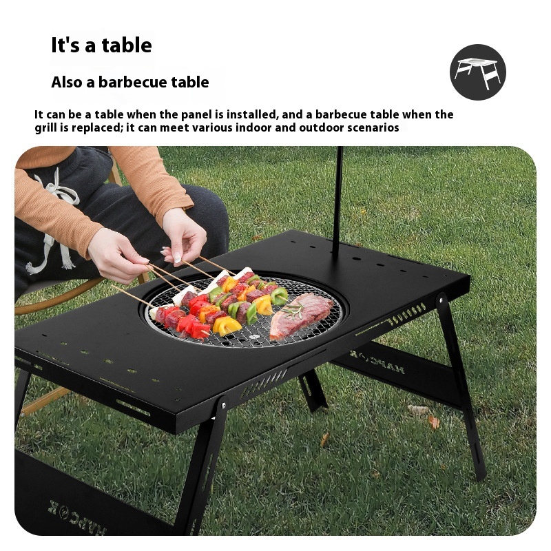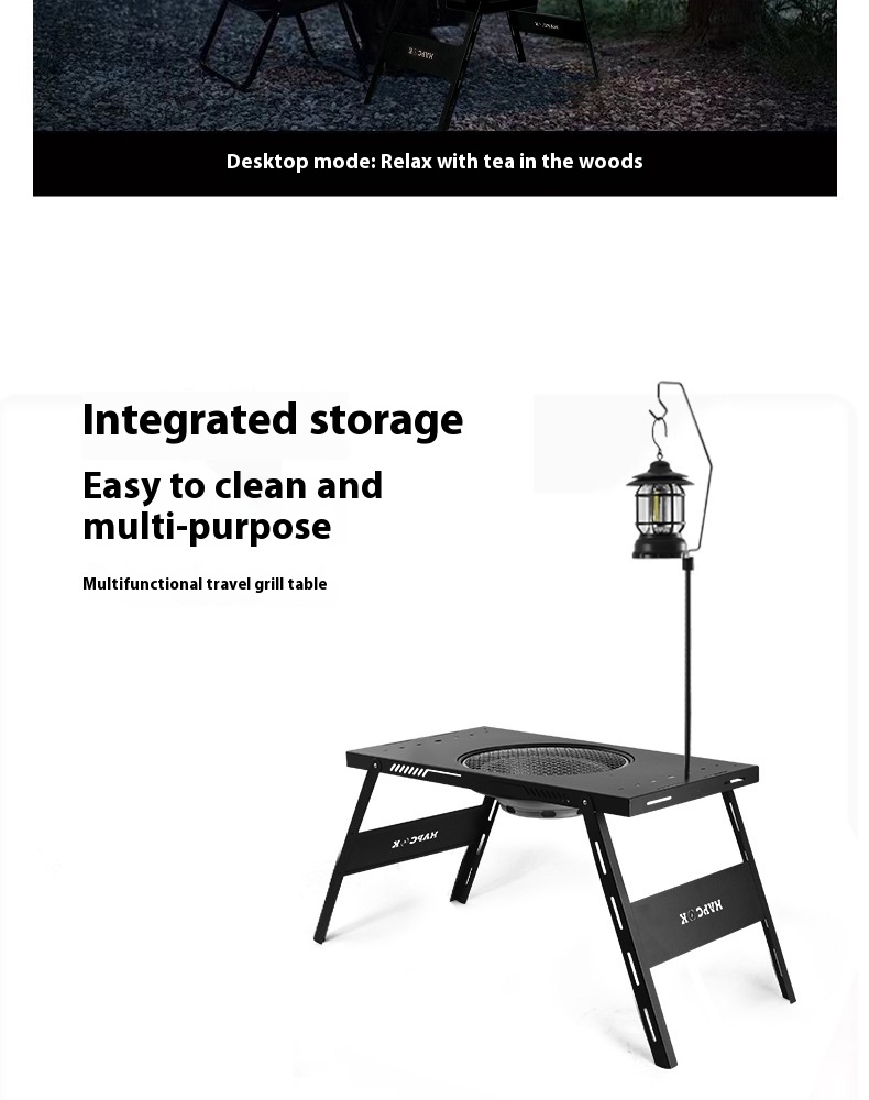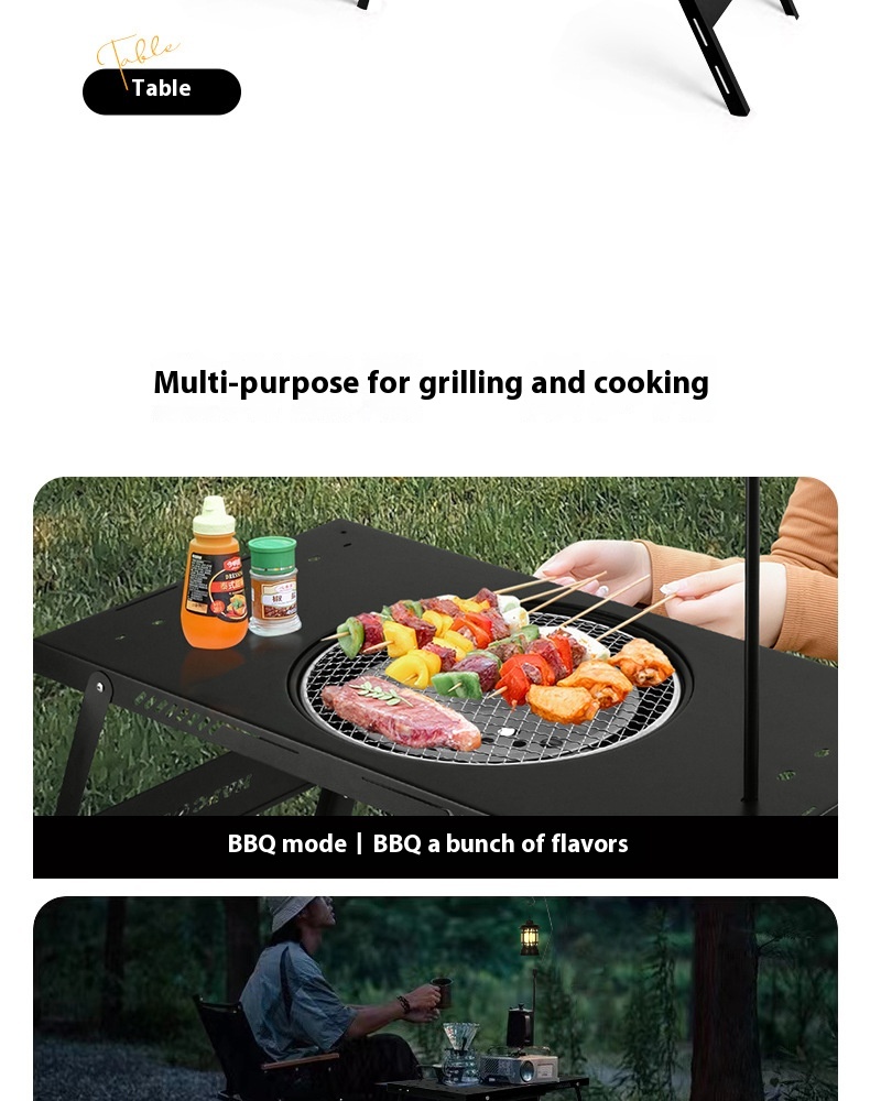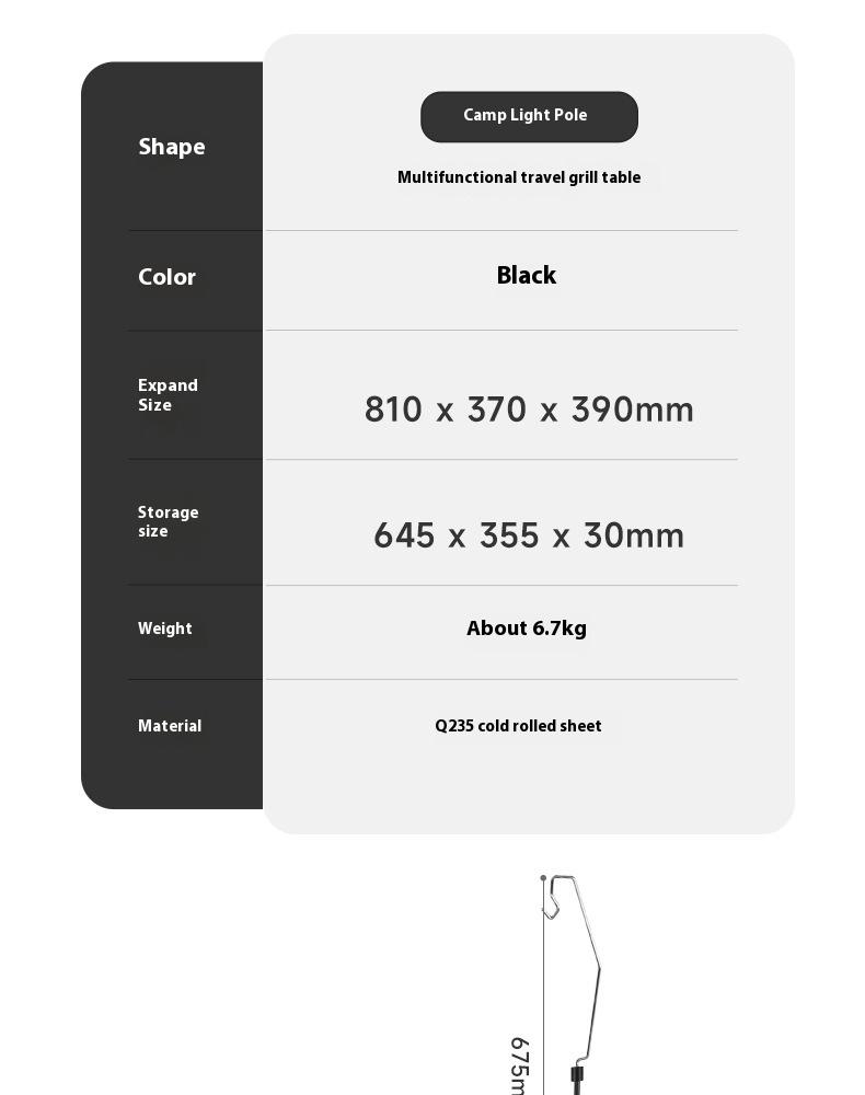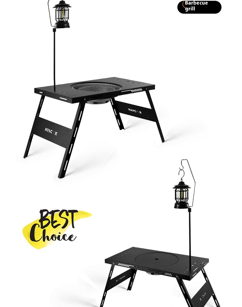 Color: Camp light pole-black round stove table, camp light pole-black square stove table