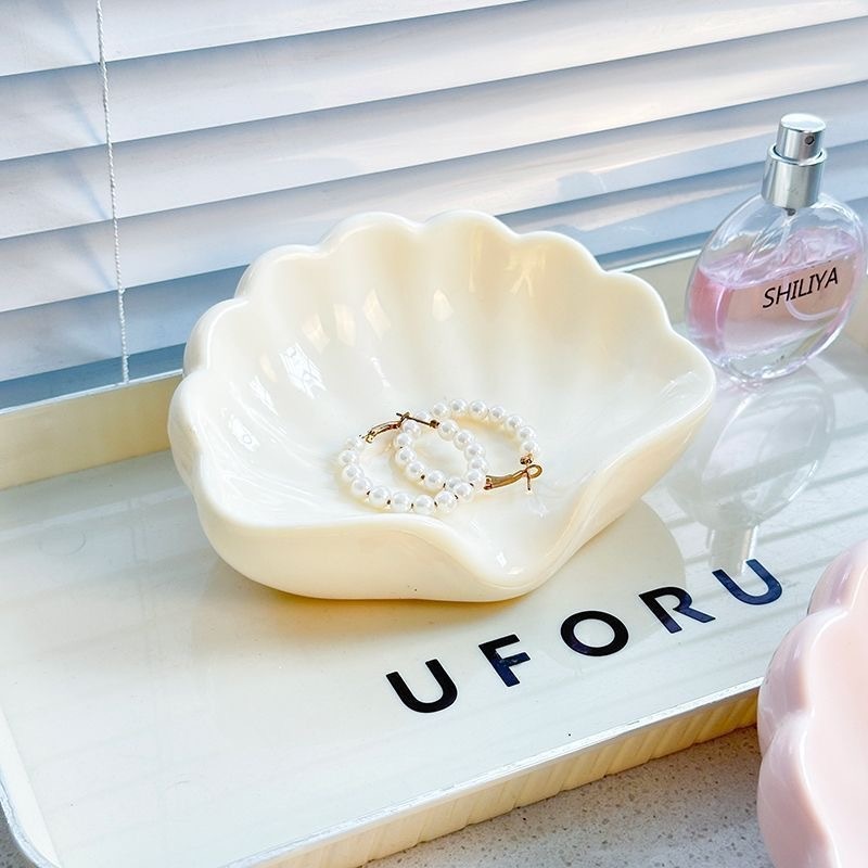 Product information:Color: Pearl White, cherry blossom powder Specification: Shell soap dish Material: pp Size: 12x9x5.5cm