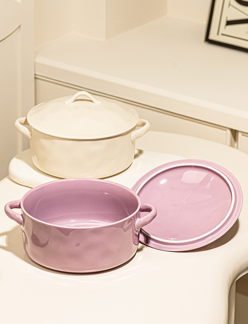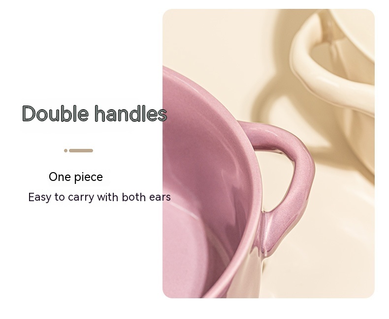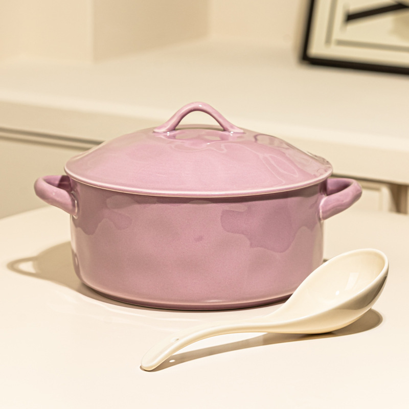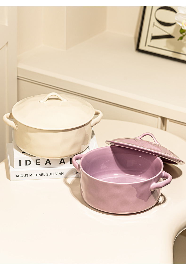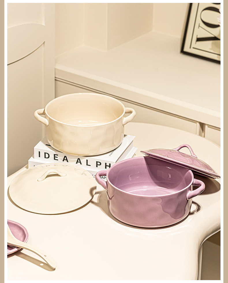 Color: double ears with lid soup bowl-purple, double ears with lid soup bowl-white coffee, double ears with lid soup bowl-purple spoon coffee, double ears with lid soup bowl-white coffee spoon coffee