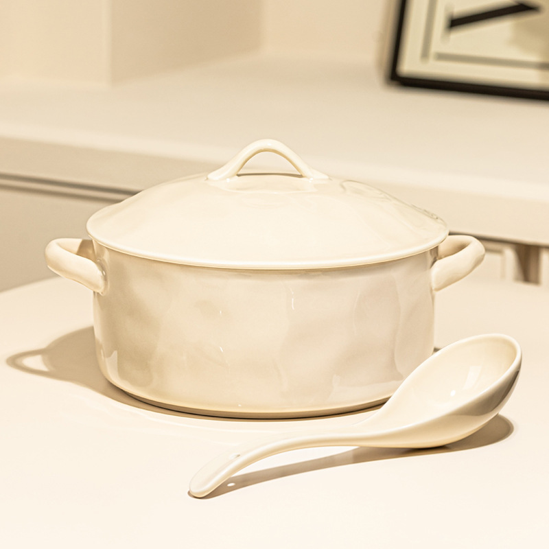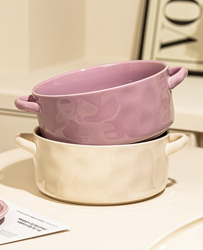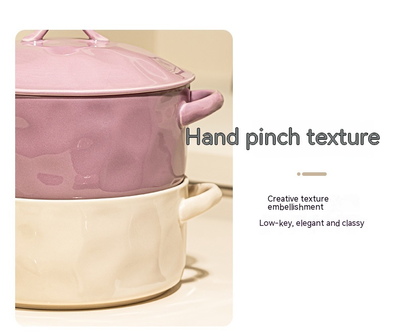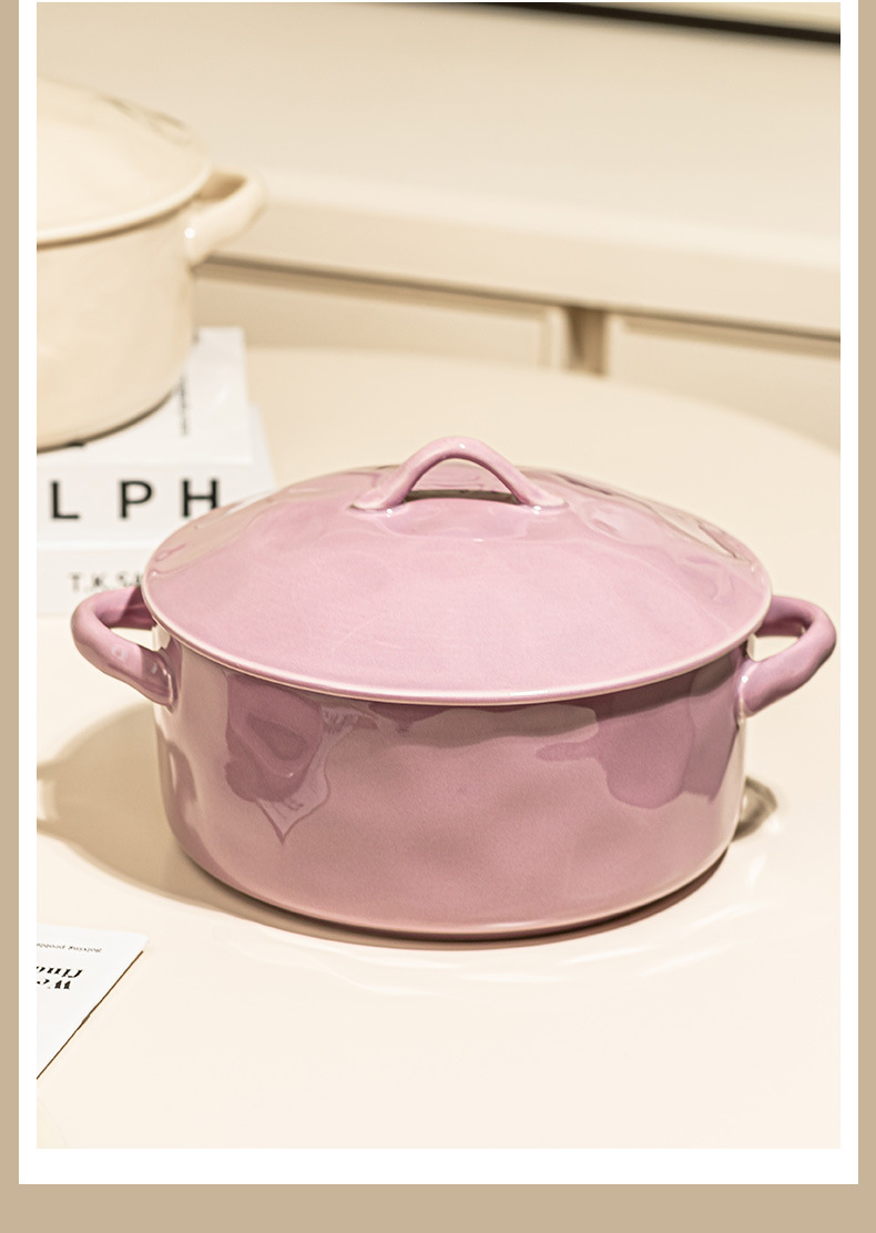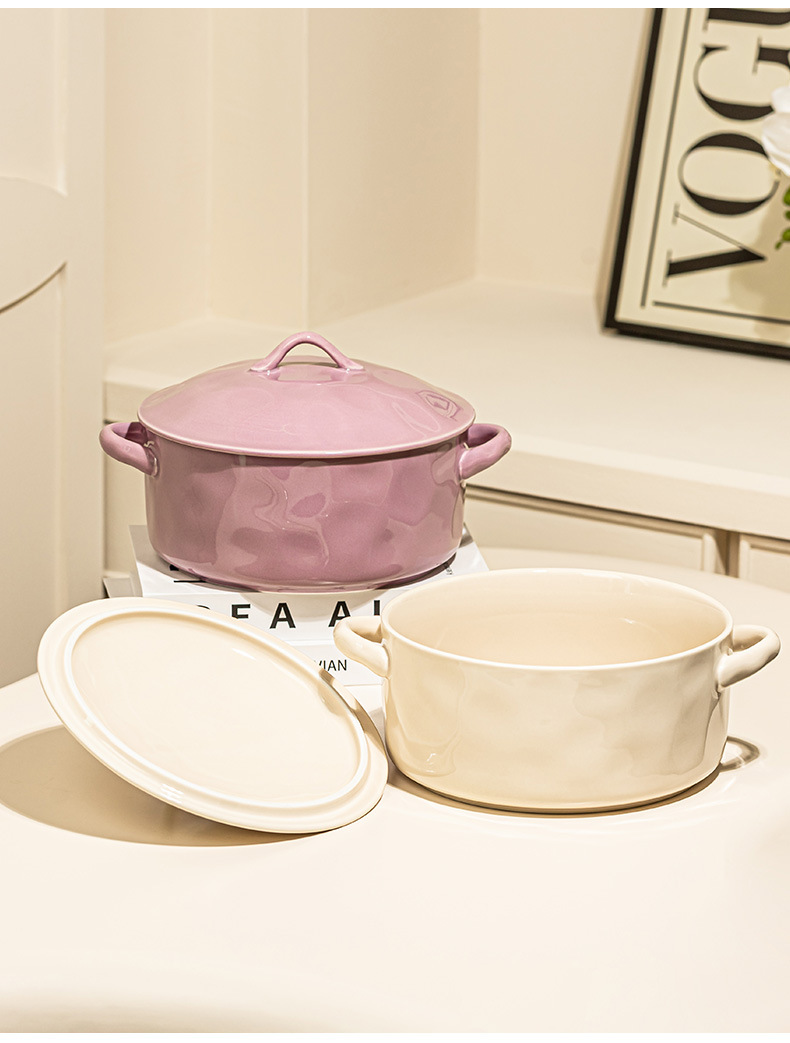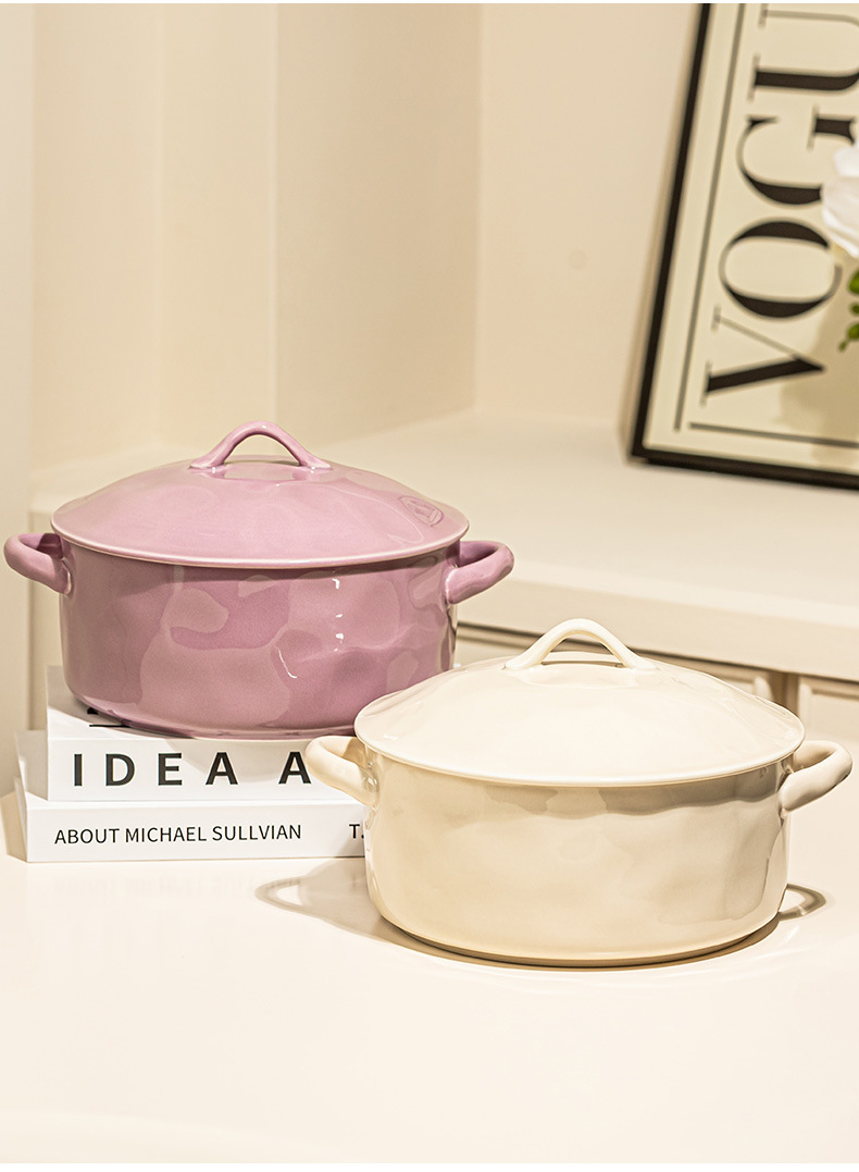 Color: double ears with lid soup bowl-purple, double ears with lid soup bowl-white coffee, double ears with lid soup bowl-purple spoon coffee, double ears with lid soup bowl-white coffee spoon coffee