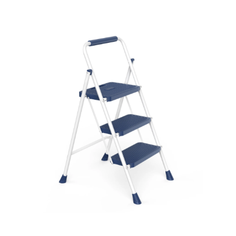 The step stool is made of high-quality steel and can support a weight of 330 pounds. When you use the steps, the metal safety buckle automatically locks in place, and the reinforced cross-support design provides maximum stability during use.