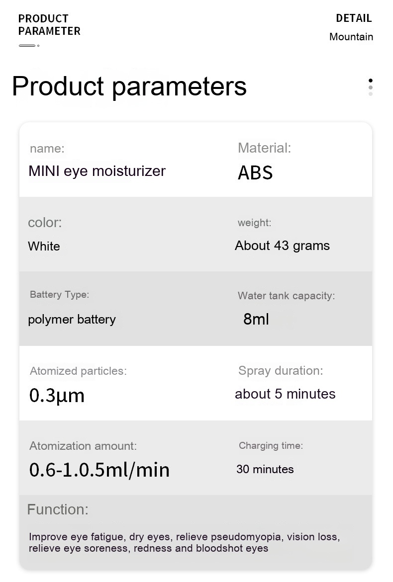 Function: Improve eye fatigue, dry and astringent eyes, alleviate pseudomyopia, and vision