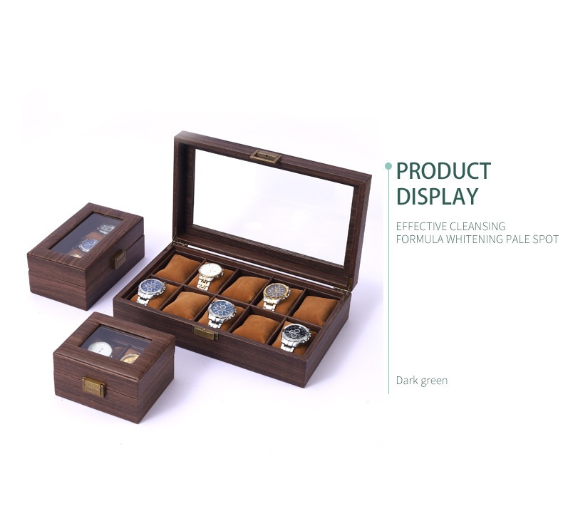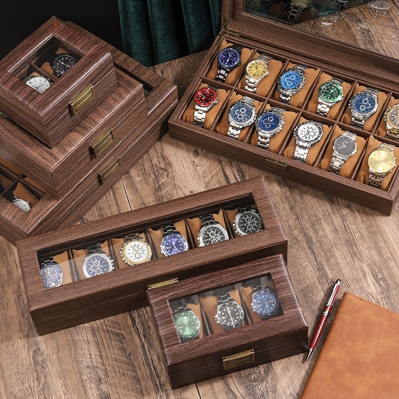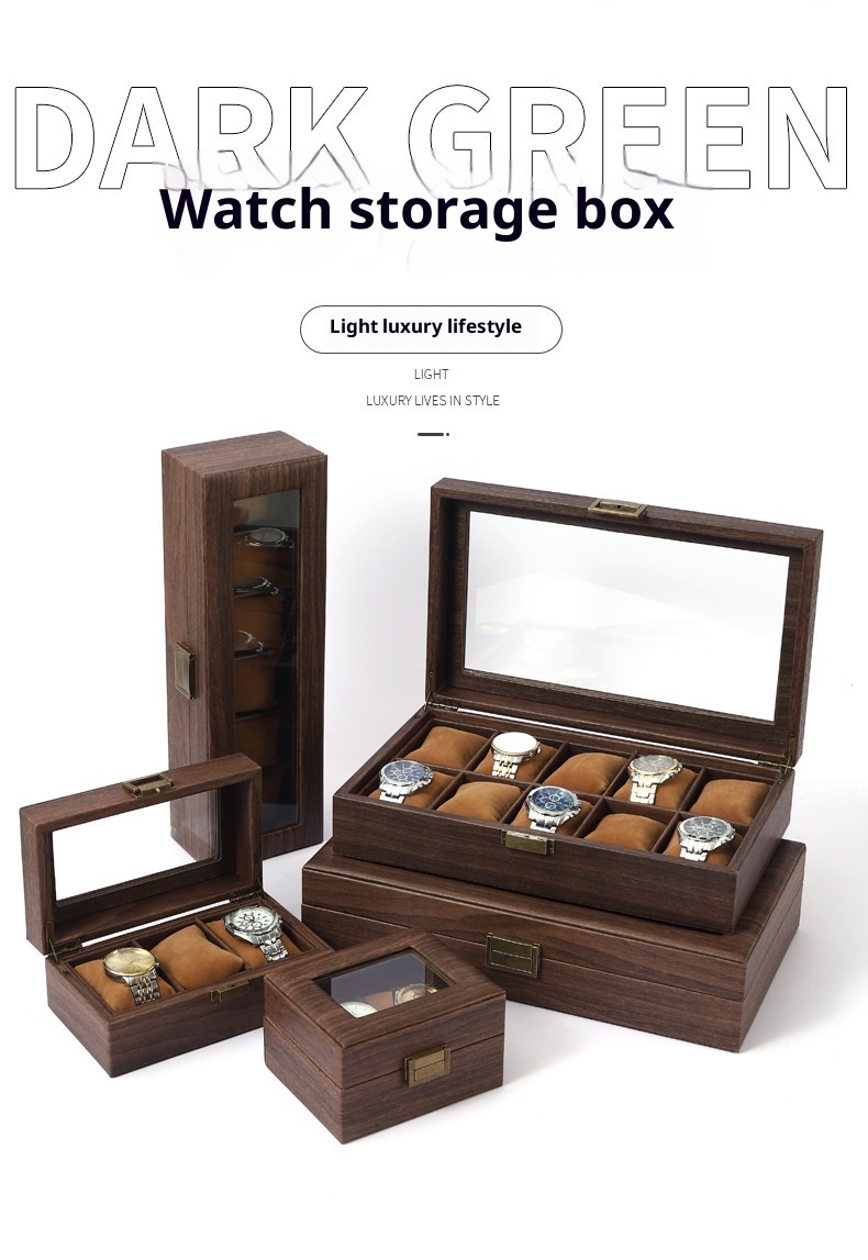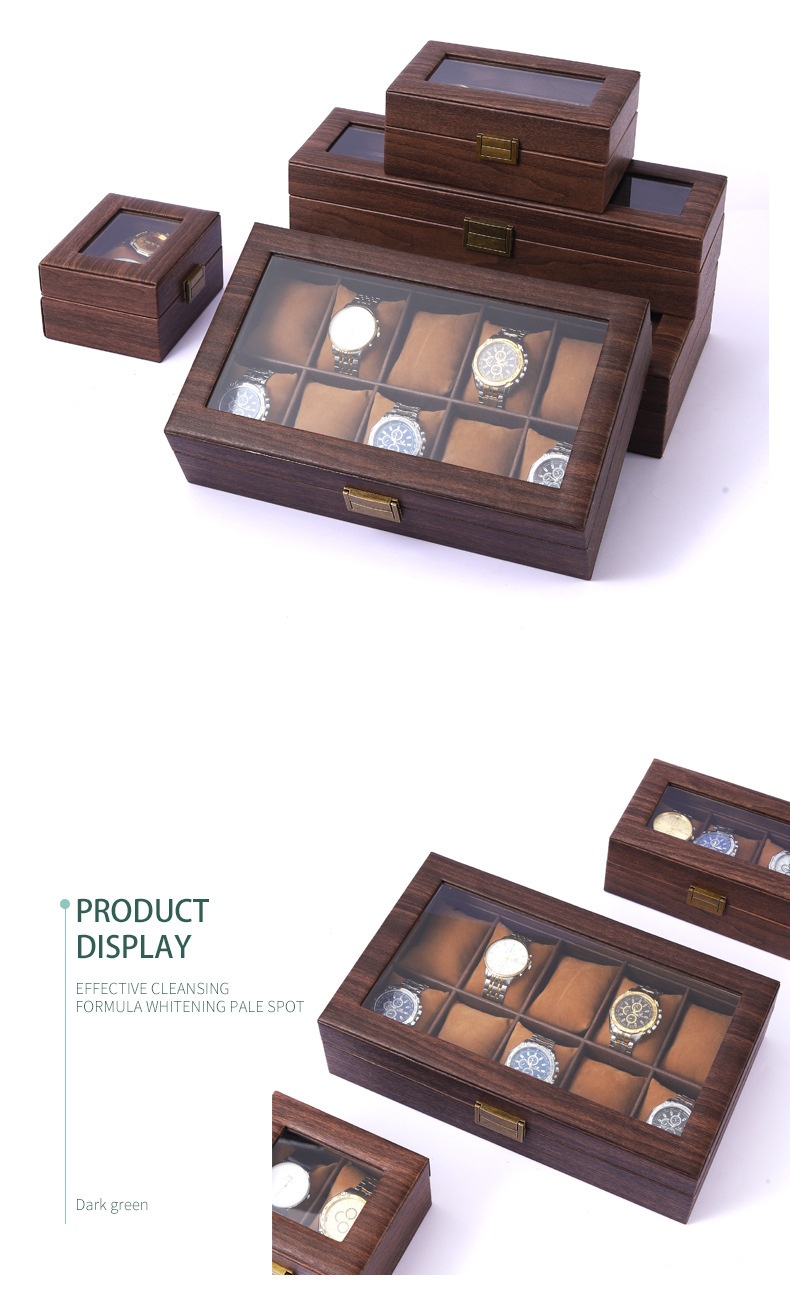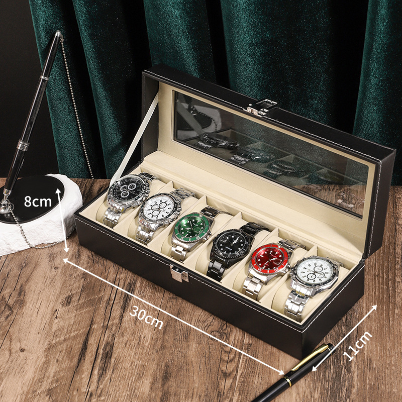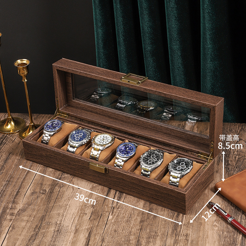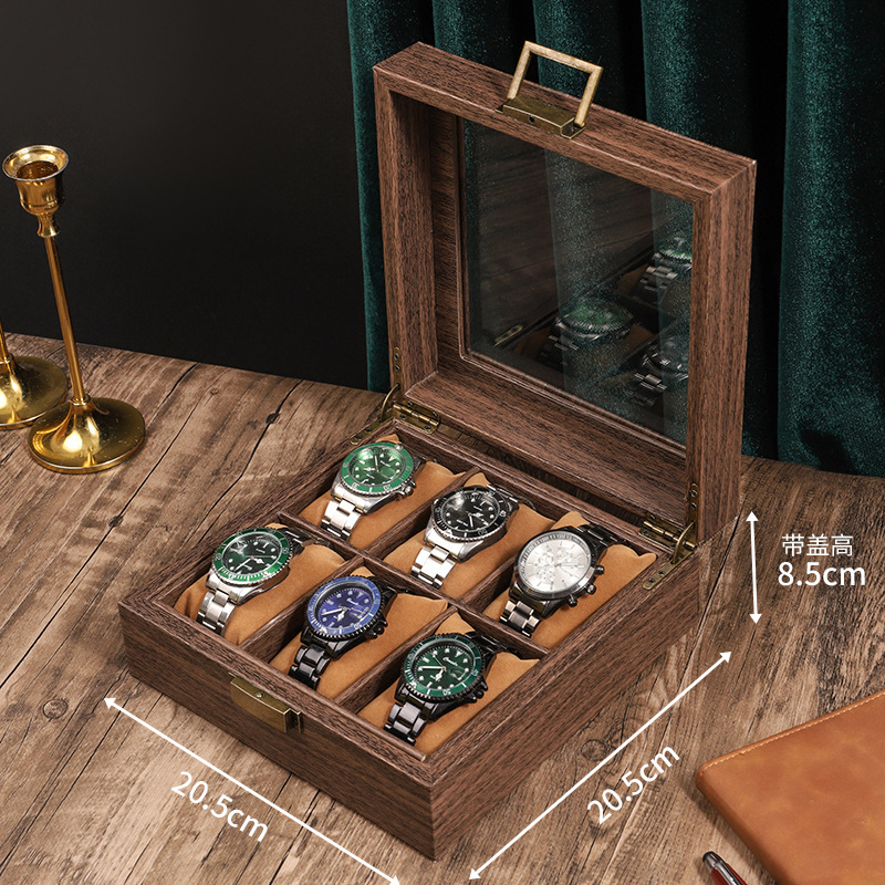 Color: Wood grain leather 2-watch box (with soft pillow), Wood grain leather 3-watch box (with soft pillow), Wood grain leather 6-watch box (with soft pillow), Wood grain leather 6-watch square box (with soft pillow), Wood grain leather 10-watch box (with soft pillow), Wood grain leather 12-watch box (with soft pillow), Wood grain leather 6+3 watch and glasses box (with soft pillow), Standard 2-watch box, Standard 3-watch box, Standard 6-watch box, Standard 10-watch box, Standard 12-watch box