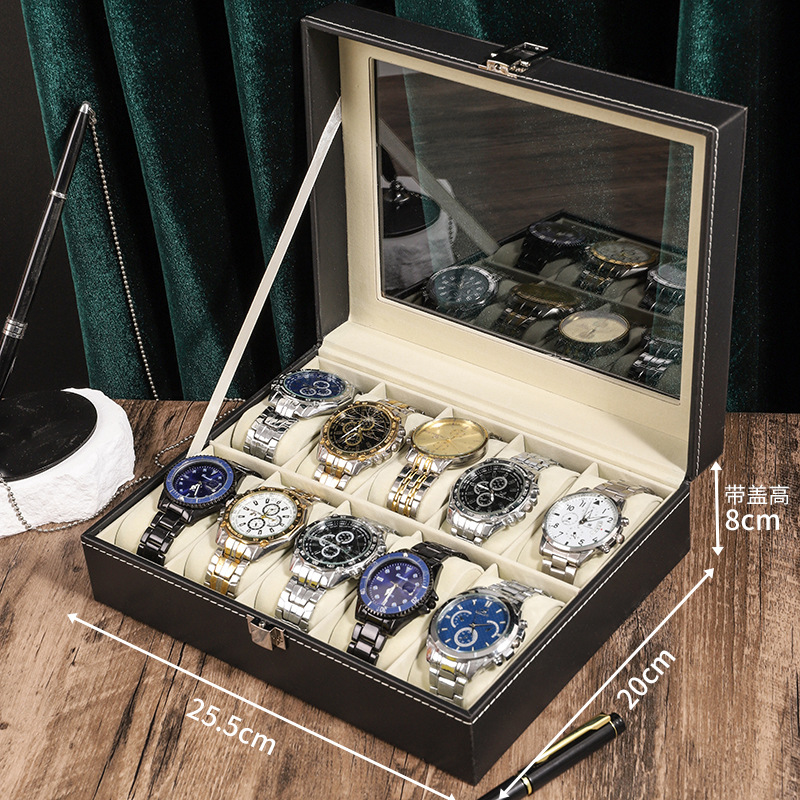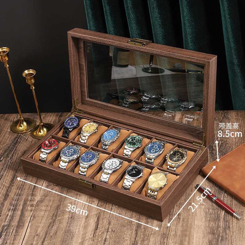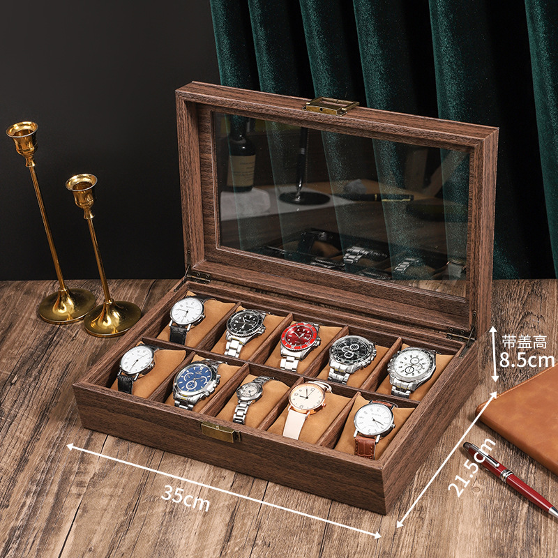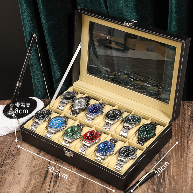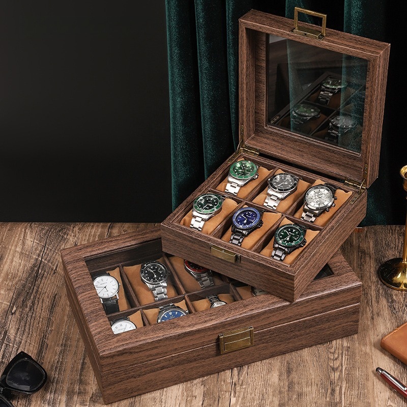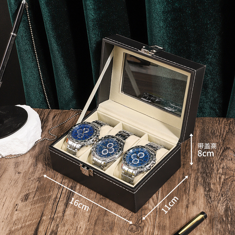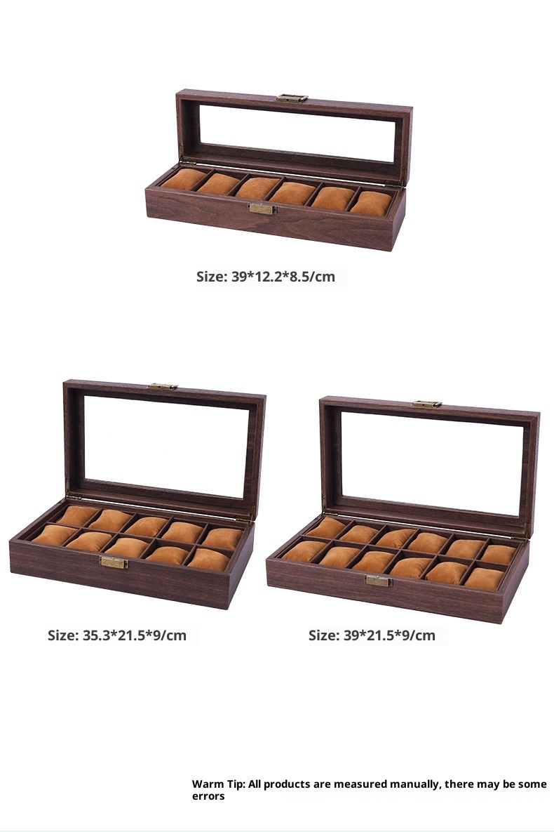 Color: Wood grain leather 2-watch box (with soft pillow), Wood grain leather 3-watch box (with soft pillow), Wood grain leather 6-watch box (with soft pillow), Wood grain leather 6-watch square box (with soft pillow), Wood grain leather 10-watch box (with soft pillow), Wood grain leather 12-watch box (with soft pillow), Wood grain leather 6+3 watch and glasses box (with soft pillow), Standard 2-watch box, Standard 3-watch box, Standard 6-watch box, Standard 10-watch box, Standard 12-watch box