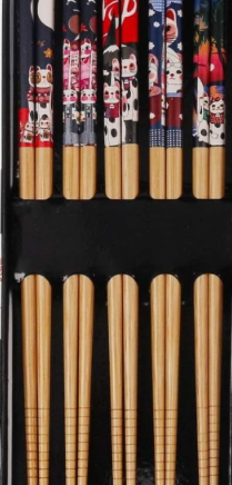 Color: five-color lucky cat bamboo chopsticks, five-color pool elegant blue bamboo chopsticks