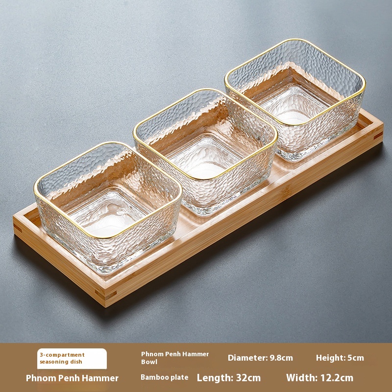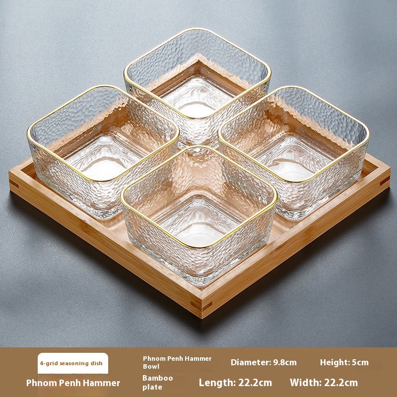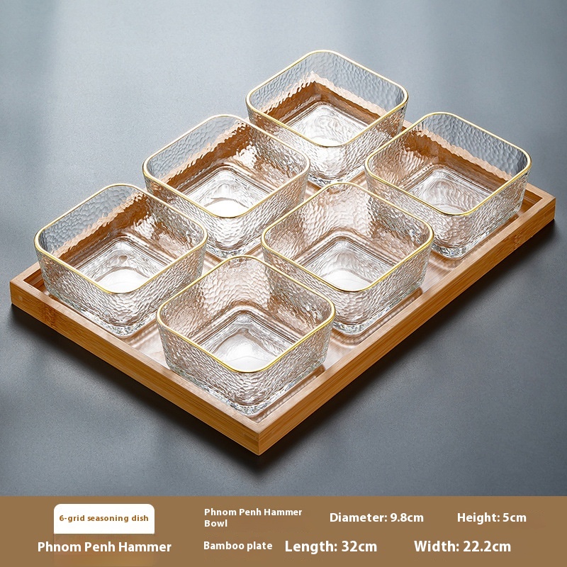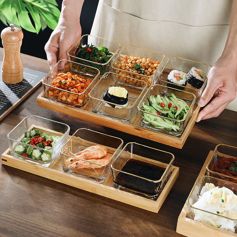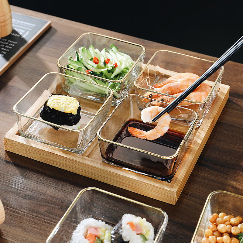 Color: 2 golden edge glass bowls with two grids bamboo plate, 3 Golden edge glass bowls with three grids bamboo plate, 4 golden edge glass bowls with four grids bamboo plate, 6 golden edge glass bowls with six grids bamboo plate, 2 hammered pattern golden trim bowls with two grids bamboo plate, hammered pattern golden trim bowls 3 three grids bamboo plate, hammered pattern golden trim bowls 4 four grids bamboo plate, hammered pattern golden trim bowls 6 six grids bamboo plate, 2 golden edge glass bowls, 4 golden edge glass bowls, 6 golden edge glass bowls, 2 hammered pattern golden trim bowls, 4 hammered pattern golden trim bowls, 6 hammered pattern golden trim bowls