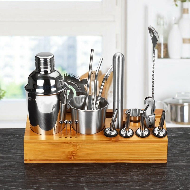 3. 22 IN 1 750ML Display Wooden Frame: This contains a high-quality display wooden frame that makes it easier to store and remove the cocktail set. Save rooms and keep clean, tidy for your table and bar. Good display of all the accessories, at a glance, easy to use.