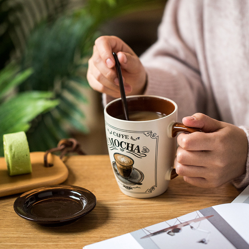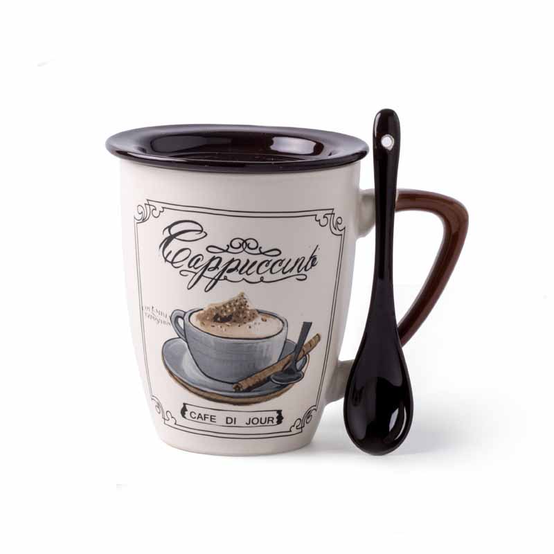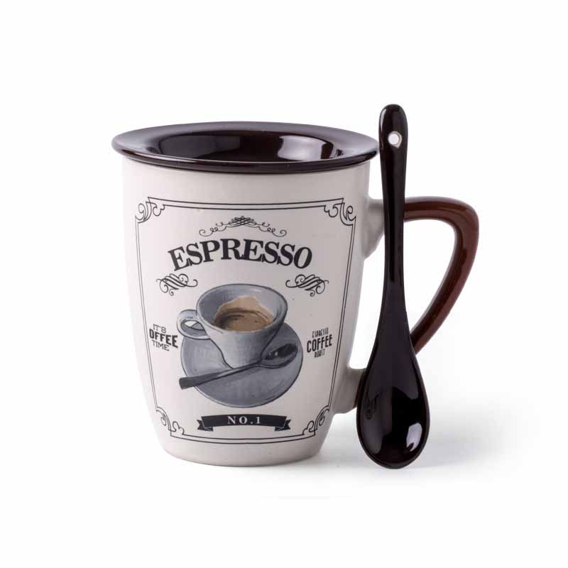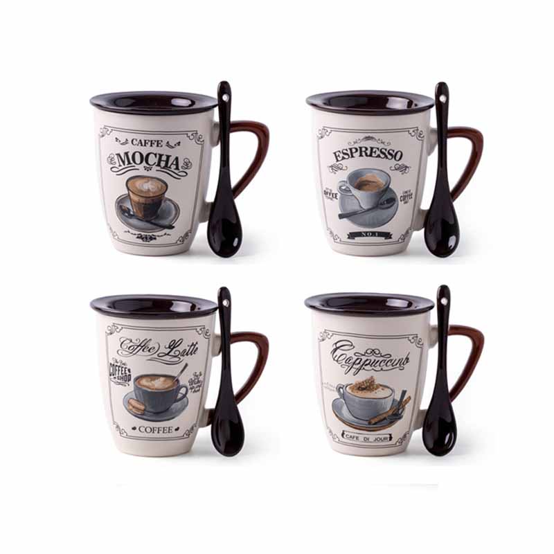 Color: Mocha + Lid, Latte + Lid, Espresso + Lid, Cappuccino + Lid, Coffee Cup with Lid and Spoon Set-4pcs