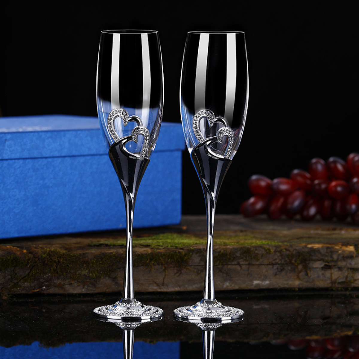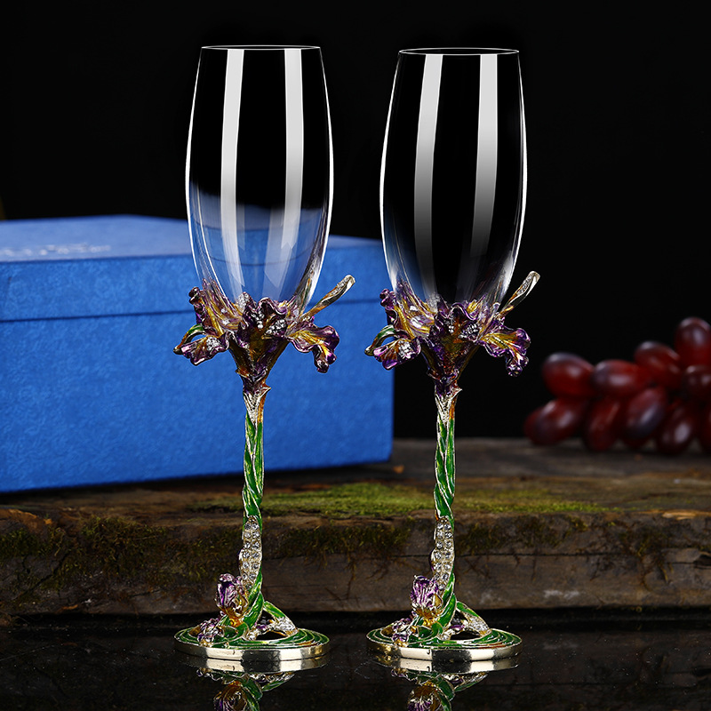 Color: silver heart-to-heart champagne glasses 2 gift boxes, golden heart-to-heart champagne glasses 2 gift boxes, rose gold heart-to-heart champagne glasses 2 gift boxes, gold iris champagne glasses 2 gift boxes, green iris champagne glasses 2 gift boxes, blue enamel 2 champagne glasses in a gift box, 2 pink enamel champagne glasses (1style 2style 3style 4style 5style 6style 7style)