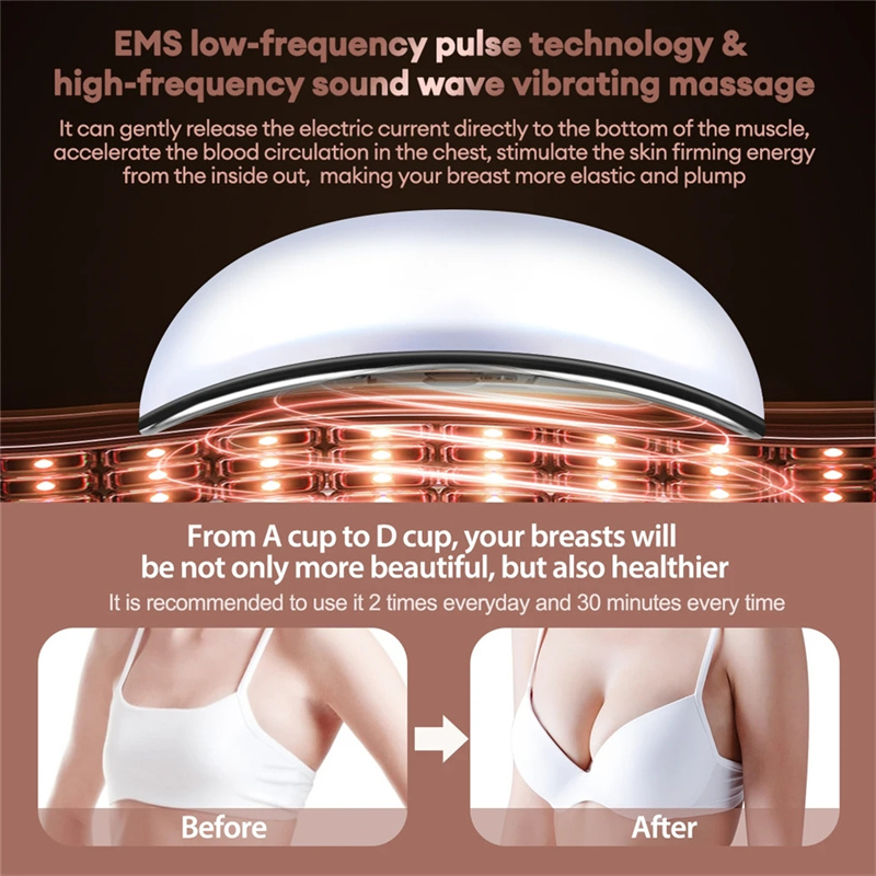 1. EMS pulse technology: It can improve breast swelling and pain during menstruation, improve armpit nodules, improve chest hyperplasia and nodules, and improve areola melanin. Through the pulse technology and the vibration function, the breast can be dredged, and the chest tightness and pain can be improved. Strengthen the activity of lymphocytes and improve immunity. It is beneficial to stimulate secondary development, and high-frequency vibration can stimulate blood circulation in the chest, making the breasts elastic, plump and plump.
