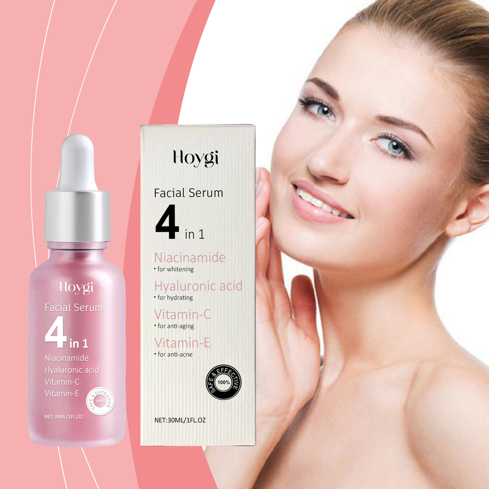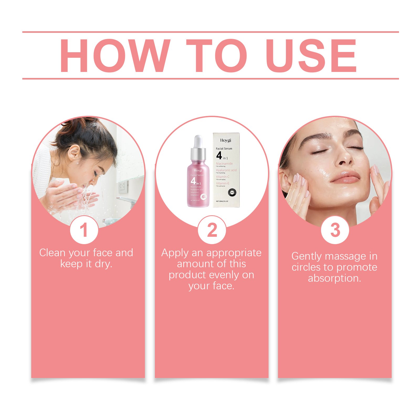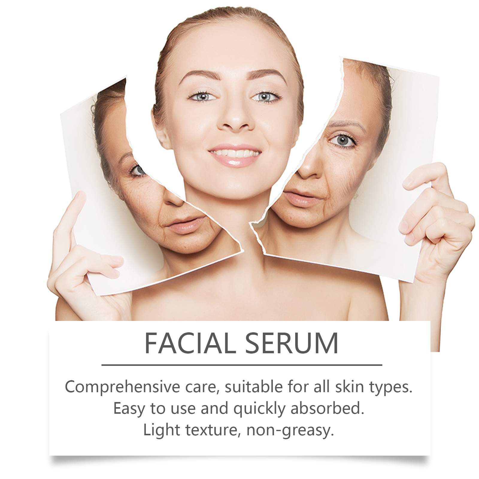 Our 4-in-1 moisturizing essence is carefully formulated with hyaluronic acid and vitamin E. Designed specifically for deep repair and enhancing skin resilience. The usage method is extremely convenient: 1. Wash your face and keep it dry. 2. Apply an appropriate amount of this product evenly to the face. 3. Gently massage the eye sockets to promote absorption. And it can provide comprehensive care, suitable for all skin types. Easy to use and absorbed quickly. The texture is light and not greasy.