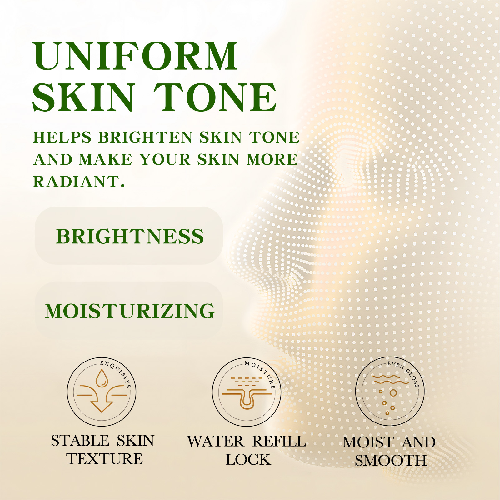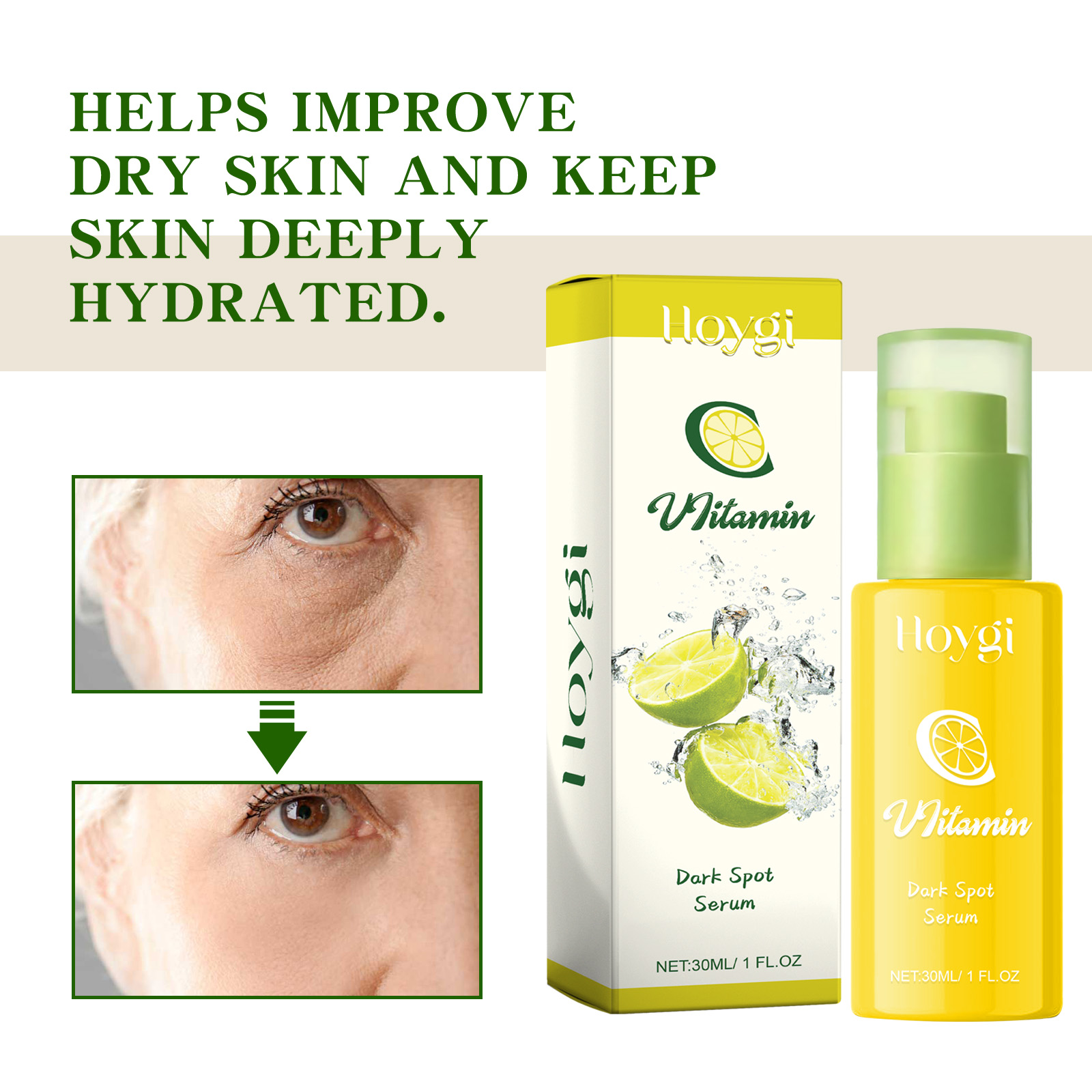 Our anti-wrinkle serum contains vitamin C, niacinamide, and hyaluronic acid. It can help to lighten the complexion, make your skin more radiant, help to improve dry skin and keep skin deep hydrated. Its use method is very simple: after cleansing, take an appropriate amount of essence evenly apply to the face. Massage the serum gently until it is fully absorbed into the skin. And can moisturize and firm the skin.