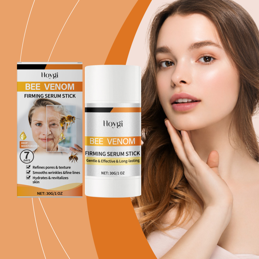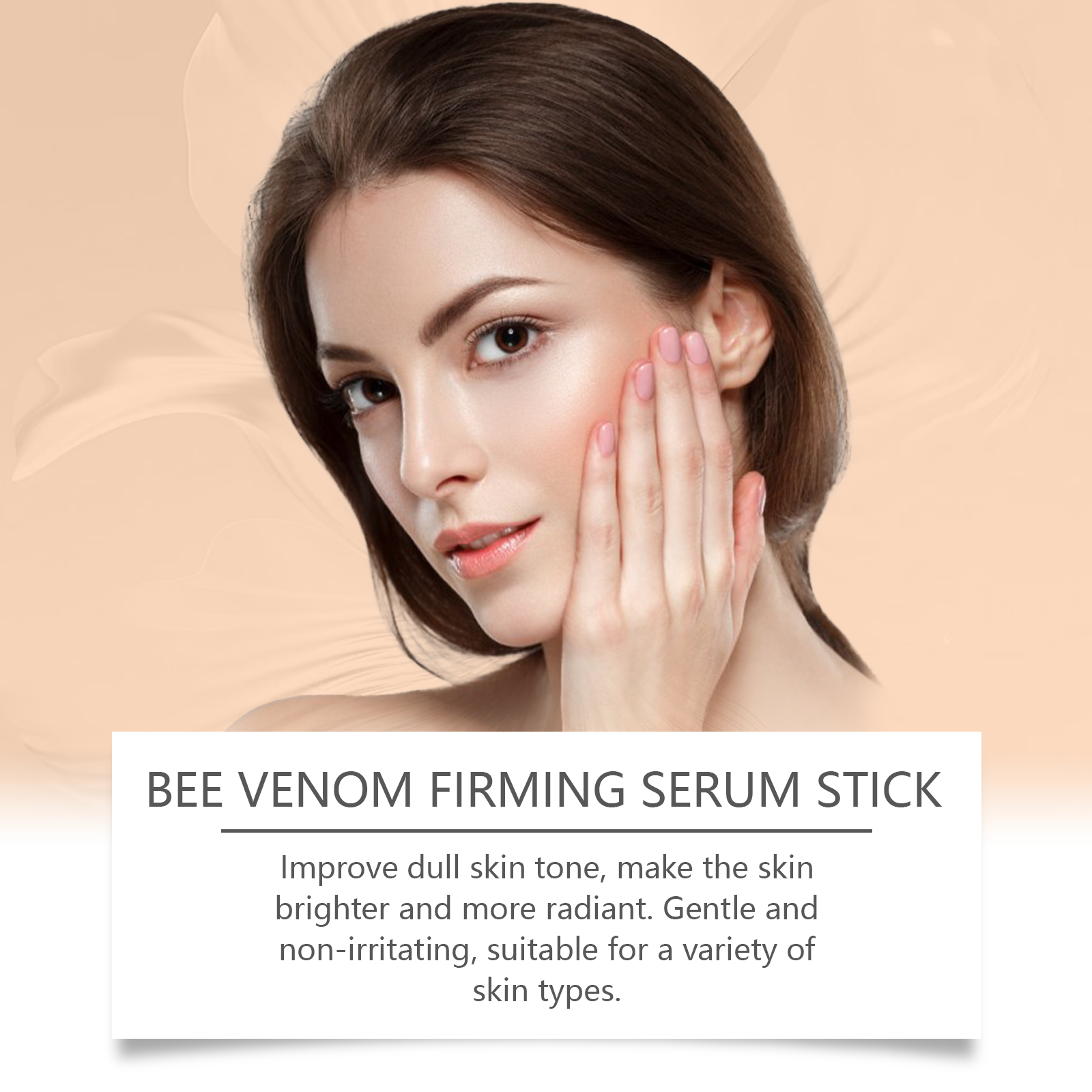 Our Bee Venom Firming Essence Stick is made with a careful blend of tocopherol (vitamin E), white beeswax and bee venom. Specially designed to improve dull skin tone for brighter and more radiant skin. It's super easy to use: clean your face and keep it dry. Apply an appropriate amount evenly to the face. Massage gently until absorbed. It is gentle and non-irritating, making it suitable for all skin types.
