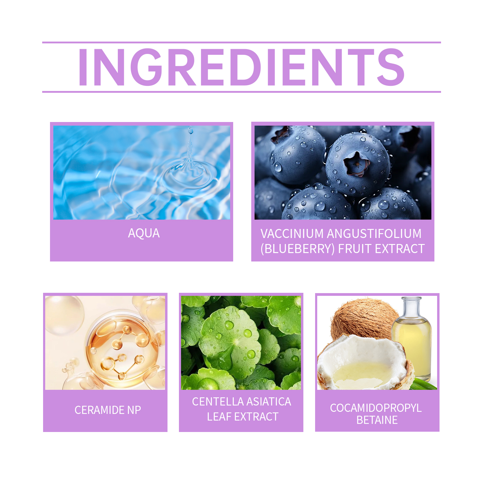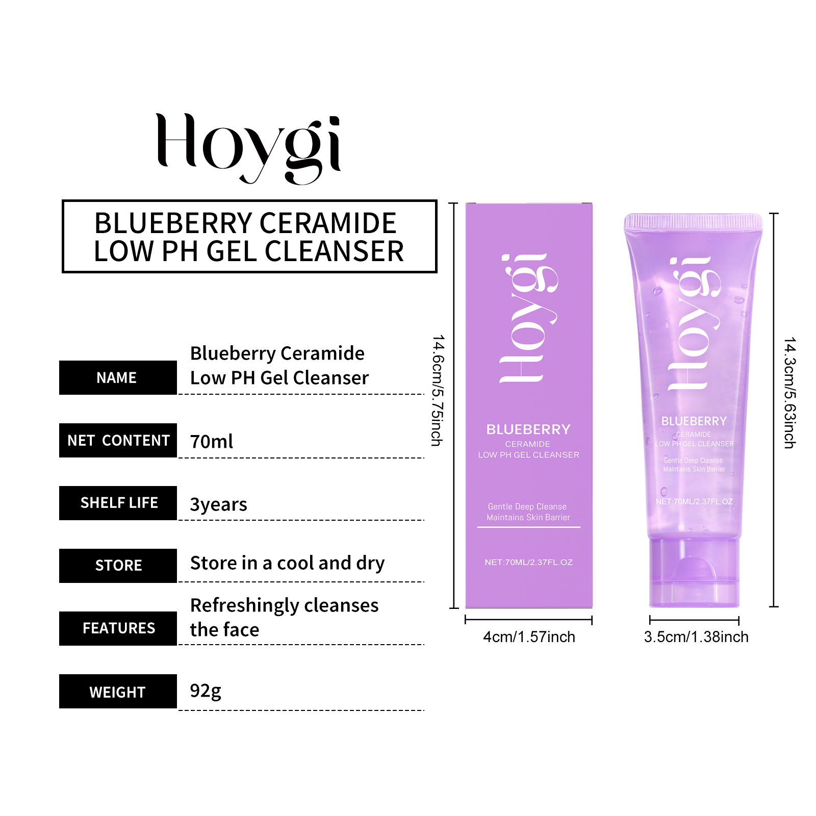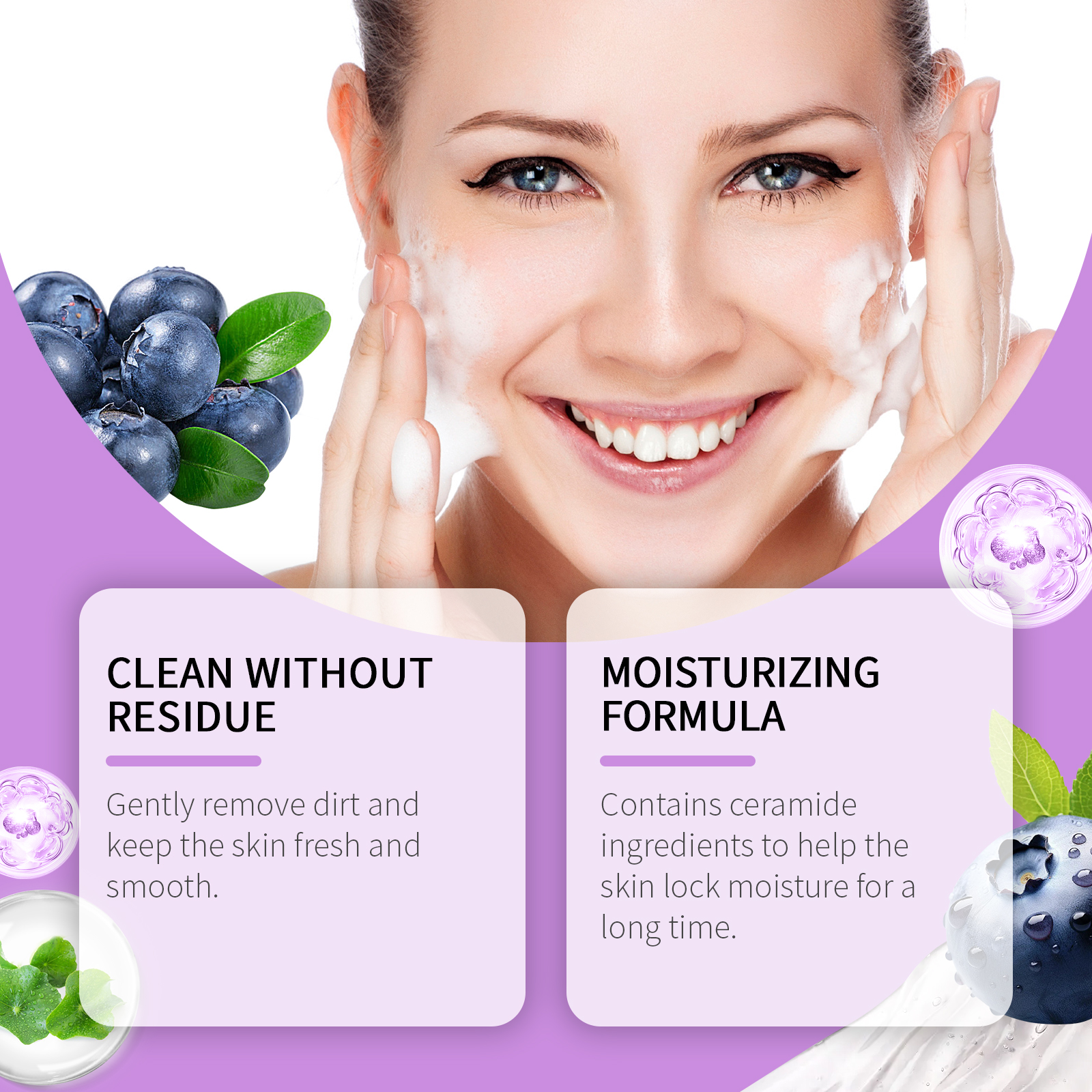 Our blueberry flavored ceramide cleansing gel contains blueberry extract, ceramide NP. It gently removes dirt and keeps skin fresh and smooth. It contains cellulose, which helps the skin retain moisture for a long time. Its use method is very simple: first thoroughly wet the face with warm water, squeeze appropriate amount of this product into the palm evenly spread on the face, gently massage 1-2 minutes. Rinsing the residue with warm water and cleansing gently helps to improve the dullness of the skin and makes it translucent.