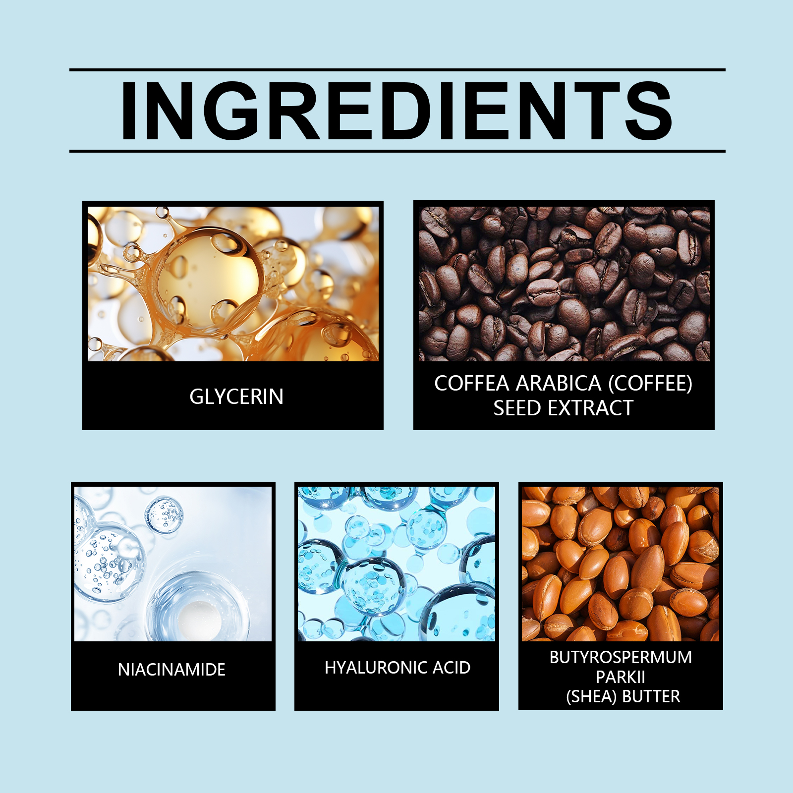 Our Body Butter Anti-wrinkle firming cream contains hyaluronic acid and shea butter. It can help reduce the appearance of fine lines and restore the youthful appearance of skin. Hydrates and moisturizes, leaving skin looking fuller and more vibrant. The way to use it is simple: clean dry skin. Take appropriate amount of this product and evenly apply to the body. Gently massage until absorbed. And can wake up the skin, eliminate fatigue, restore the spirit.