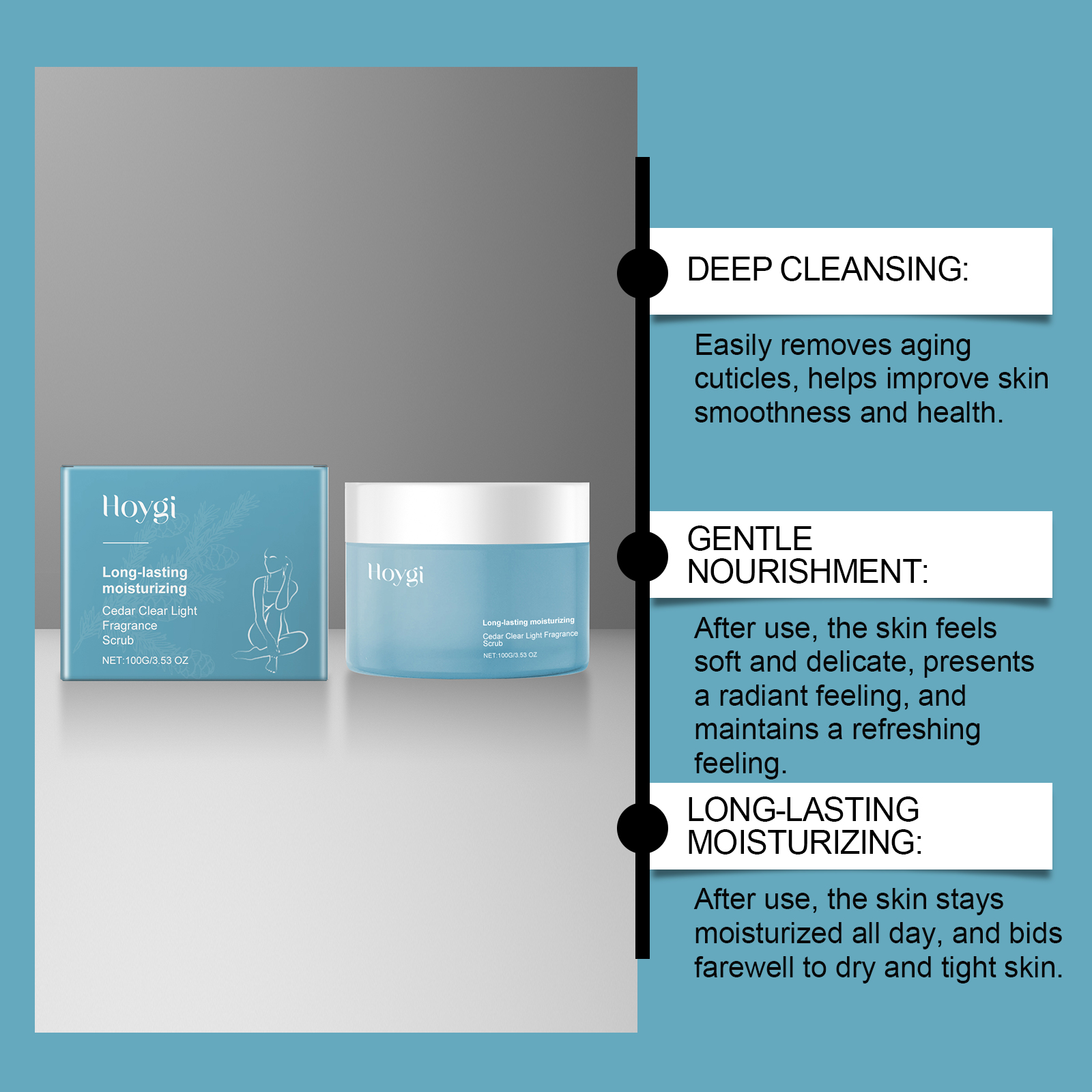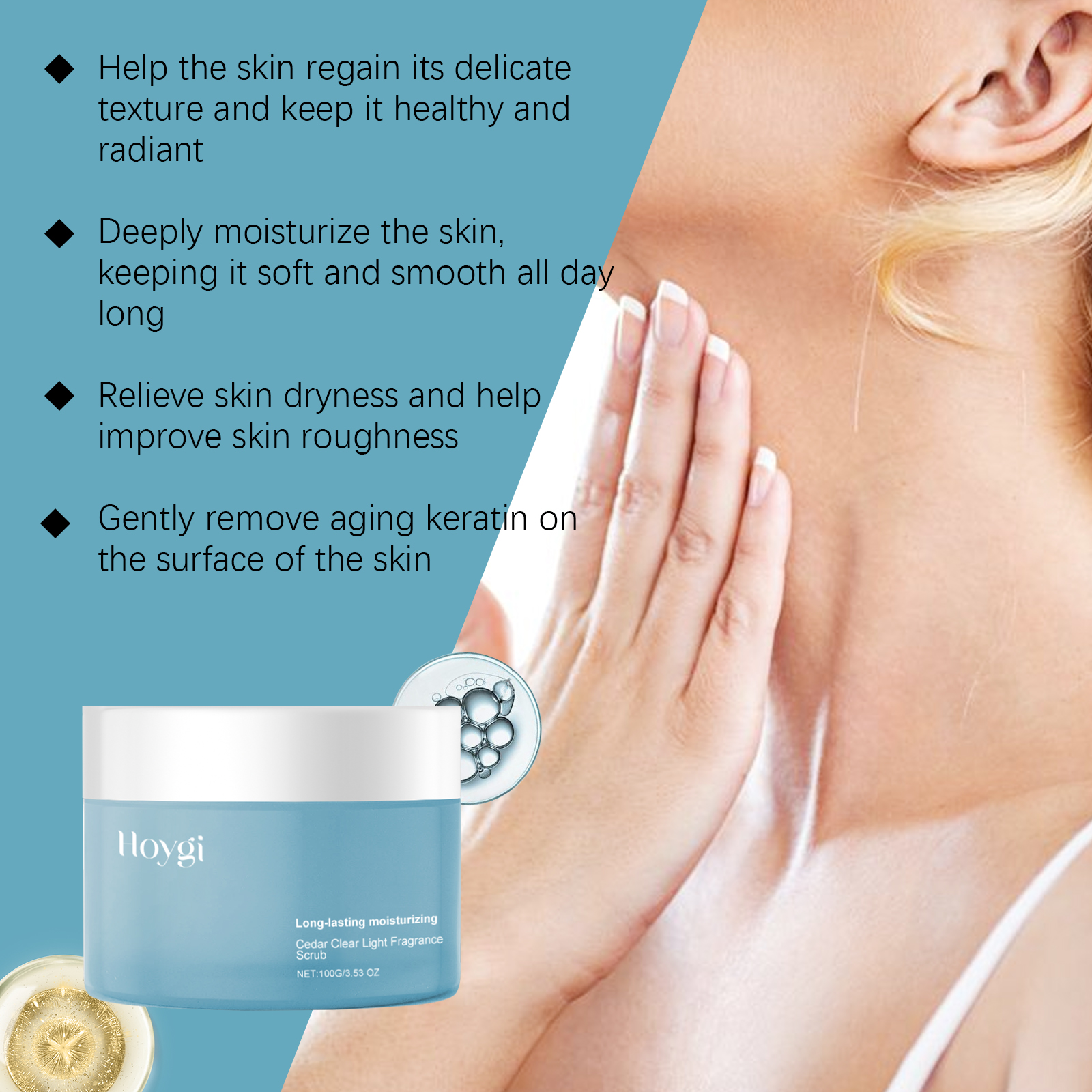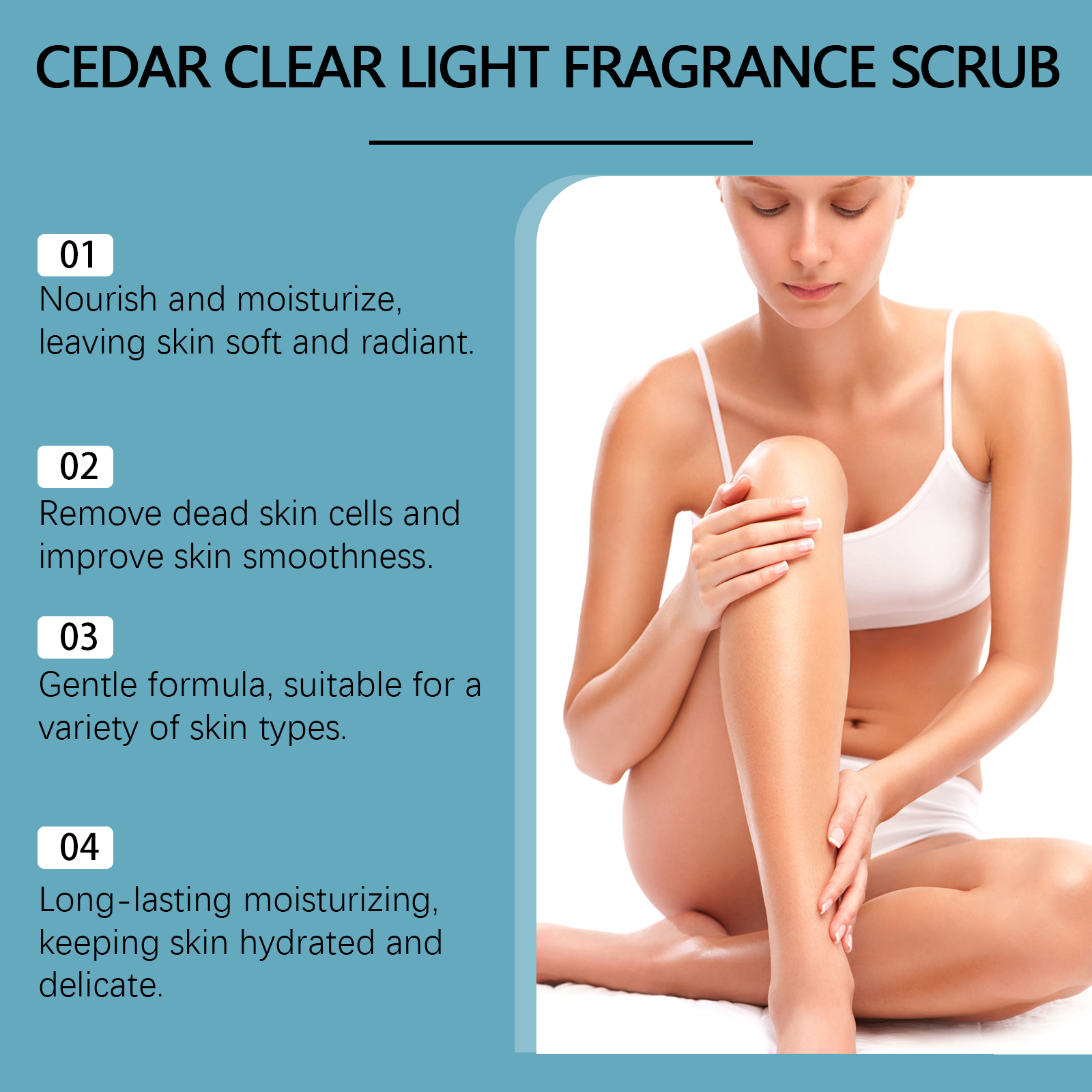 Our cedar scrub contains glycerin, cedar wood oil. It moisturizes skin care and helps keep skin soft and elastic. Easy to apply, fresh and non-stick, soft skin, no residue after use. Its use method is very simple: take a proper amount of clean and dry facial cleanser evenly apply to the face. It can also improve the overall feel and appearance of the skin, making it softer and more delicate. The product is easy to use, simple and efficient, and is essential for daily care.