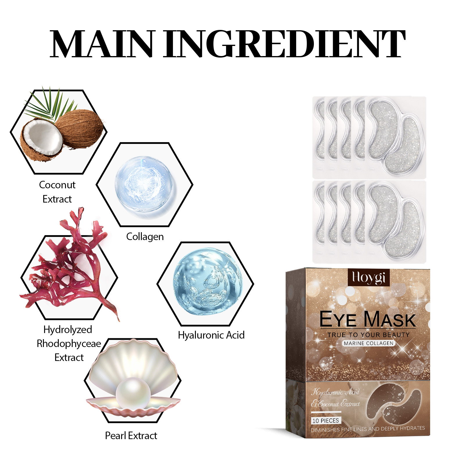 Our coconut eye gel contains aloe vera extract, collagen, and hyaluronic acid. It can make the eyes glow with youth, adjust the skin water and oil balance, even the skin tone; Deep water, smooth fine lines, remove fat particles around the eyes; Replenish collagen around eyes, reduce dark spots and acne marks, and make skin smoother. The way to use it is simple: 1. Use it after cleaning the skin of the eye. 2. Take an eye mask and gently apply it to the appropriate place around the eye. 3. Wait 5-10 minutes before taking it out. Coconut Eye Gel paste high-quality and long-lasting facial enhancement, tight eyes, rapid reduction of volume anti-aging, visible dark circles and puffiness instant relief of tightness, dry and smooth, so that you have a young face.