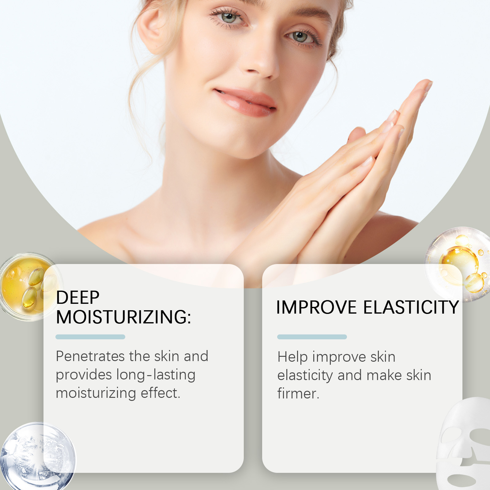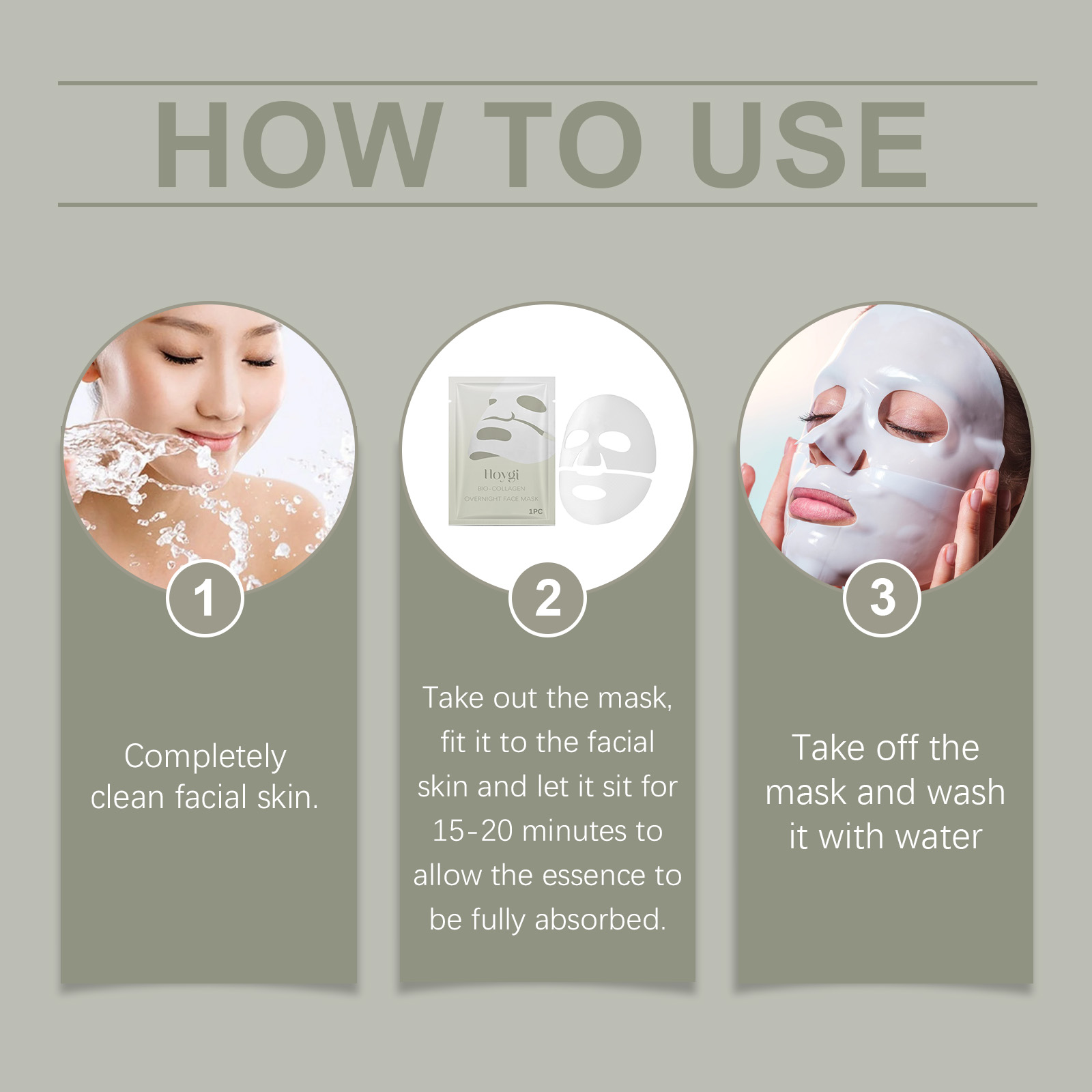 Our collagen Moisturizing mask (bag) contains triethanolamine, sodium hyaluronate, collagen. It can help enhance skin elasticity and make the skin tighter. Its usage is very simple: thoroughly clean your facial skin, take out the mask, apply it to your facial skin, let it sit for 15 to 20 minutes to allow the essence to be fully absorbed, then remove the mask and wash it off with clean water. And it can penetrate the skin and provide long-lasting moisturizing effects.