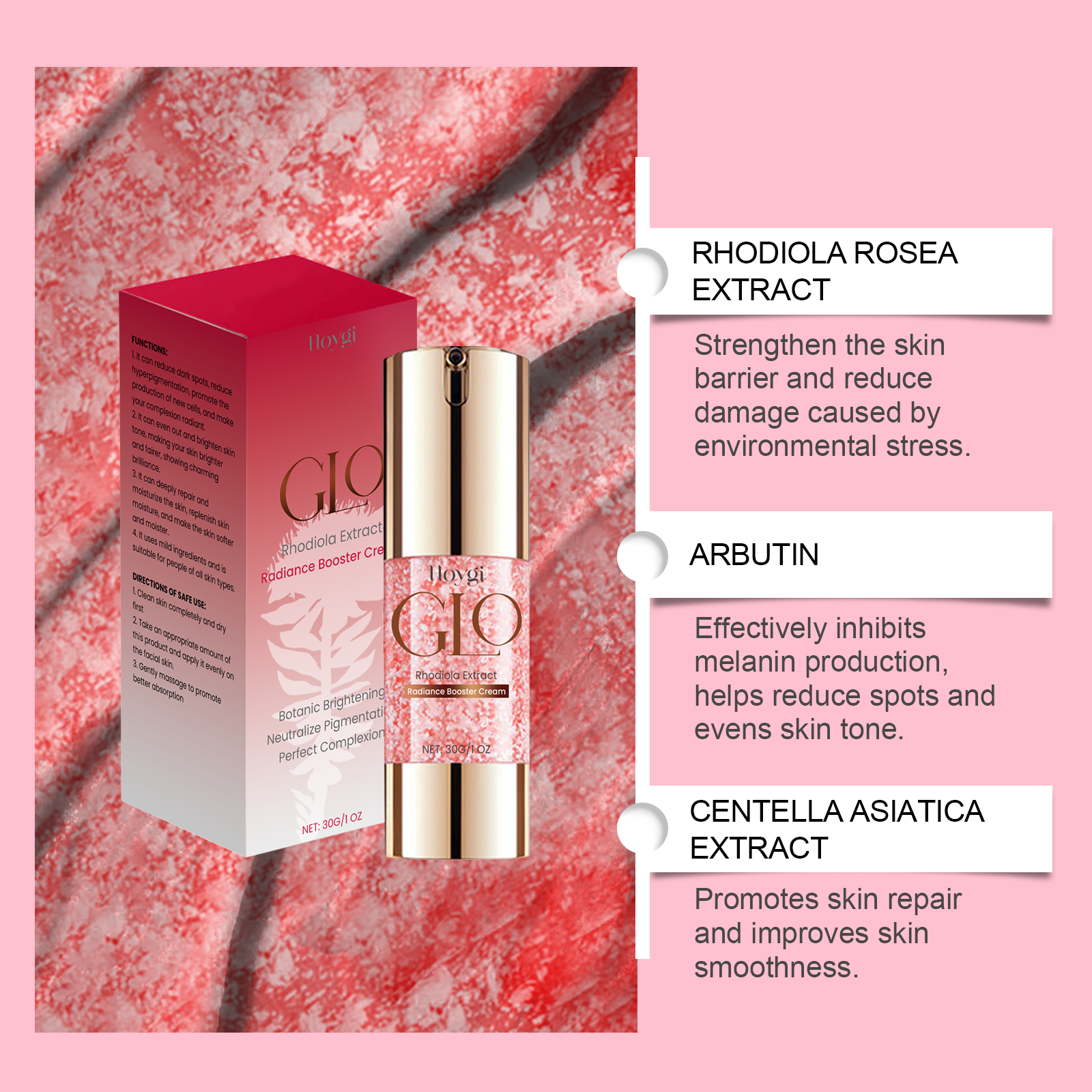 Our Dragon's blood cream contains rhodiola rosea extract, arbutin, and Asiaticum asiatica extract. It can effectively dilute melanin and even out skin tone. Restore skin shine; Deeply repair the bottom layer of skin and improve the dullness of skin. The way to use it is simple: 1. First thoroughly clean and dry your skin. 2. Apply appropriate amount of the product evenly on the face. 3. Massage gently to promote better absorption. Contains a variety of plant extracts, herbal ingredients to nourish the skin. Non-irritating, suitable for sensitive skin, safe and reliable.