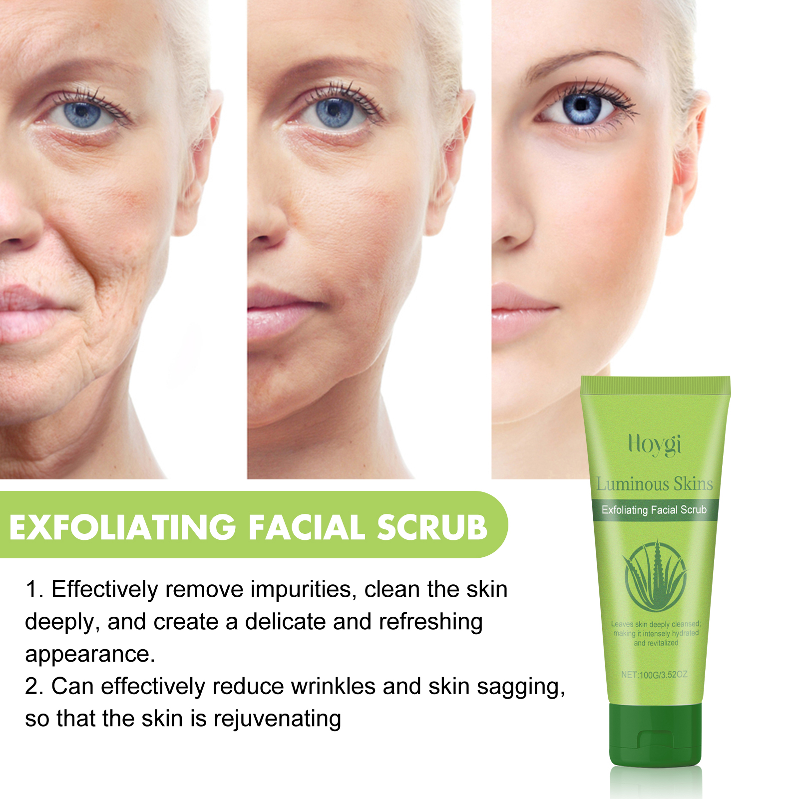Our Exfoliating Facial Scrub contains Glycerin, Aloe Barbadensis Leaf Extract, Hamamelis Virginiana (Witch Hazel)Extract. It can effectively remove impurities, deeply clean the skin, create a delicate and refreshing appearance, effectively reduce wrinkles and sagging skin, and make the skin feel youthful and energetic. Its application method is very simple: apply appropriate amount of this product directly on the face skin, gently massage with your hand for 30-60 seconds, and then rinse with water. It can remove facial impurities, reduce facial fine lines and sagging skin problems.