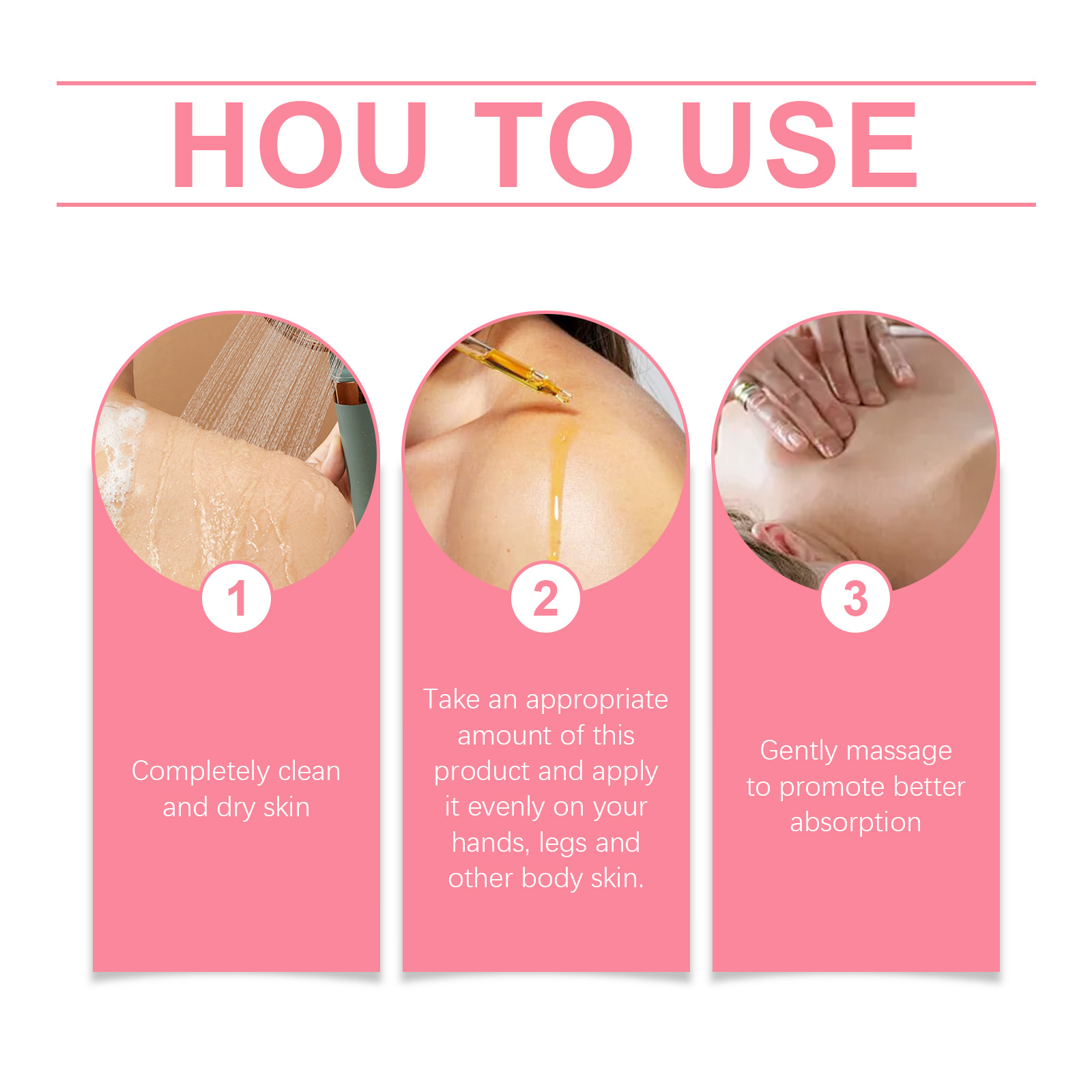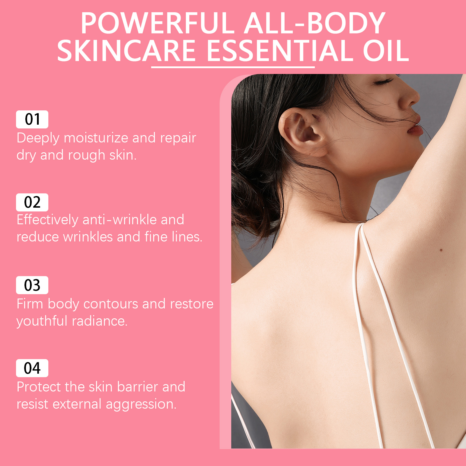 Our whole body essential oils contain mineral oil and tea tree oil. It can effectively fight aging, reduce wrinkles and fine lines, and make your skin smoother. It can deeply moisturize and moisturize the skin, support the skin hydration, and make your skin more smooth. Its application method is simple: completely clean and dry skin, apply appropriate amount of this product evenly on the hands, legs and other body skin. Massage gently to promote better absorption. And use mild ingredients that are suitable for people with all skin types.