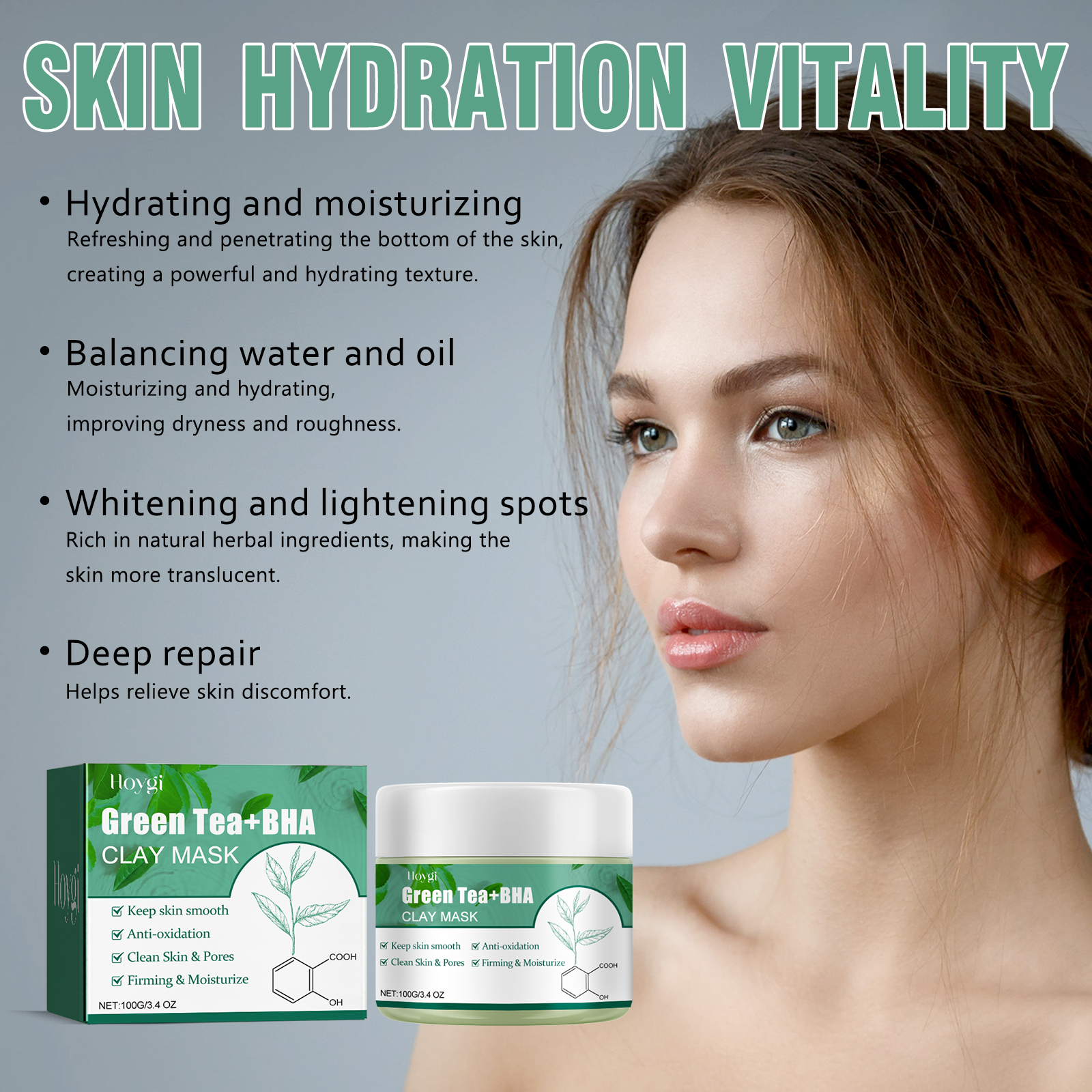 Our green tea cleaning mud film contains witch hazel leaf extract, hyaluronic acid, camellia leaf extract. It can hydrate and moisturize, refreshing and penetrating the bottom of the skin, creating a strong moisturizing texture; Improve dry and rough skin, whiten and fade spots, rich in natural herbal ingredients, make skin more transparent; Deep repair to help relieve skin discomfort. Its use is simple: 1. Apply a hot towel to your facial massage for 2-3 minutes to open the pores. 2. Take the proper amount of mud mask and apply it evenly on the face. After about 10-15 minutes, wash it off with water. Green tea cleansing mud mask replenishes skin with moisture and energy, leaving skin fresh and tender; Penetrate deep into the skin, remove oil and dirt, tighten the skin, make the skin rejuvenated.