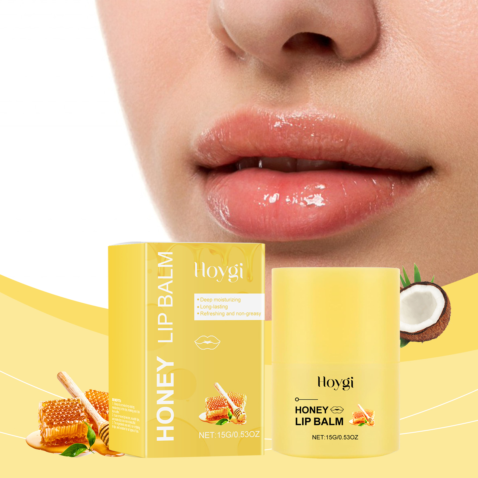 Our Honey Nourishing Lip Balm contains glycerin, propolis extract, honey. It deeply moisturizes lips and prevents dryness and chapping. Long-lasting hydration to keep lips soft and comfortable all day long. Its use is simple: 1. Clean your lips and keep them dry. 2. Take an appropriate amount of this product and apply it evenly to the lips. The formula is lightweight, fast-absorbing, non-greasy and comfortable to use.