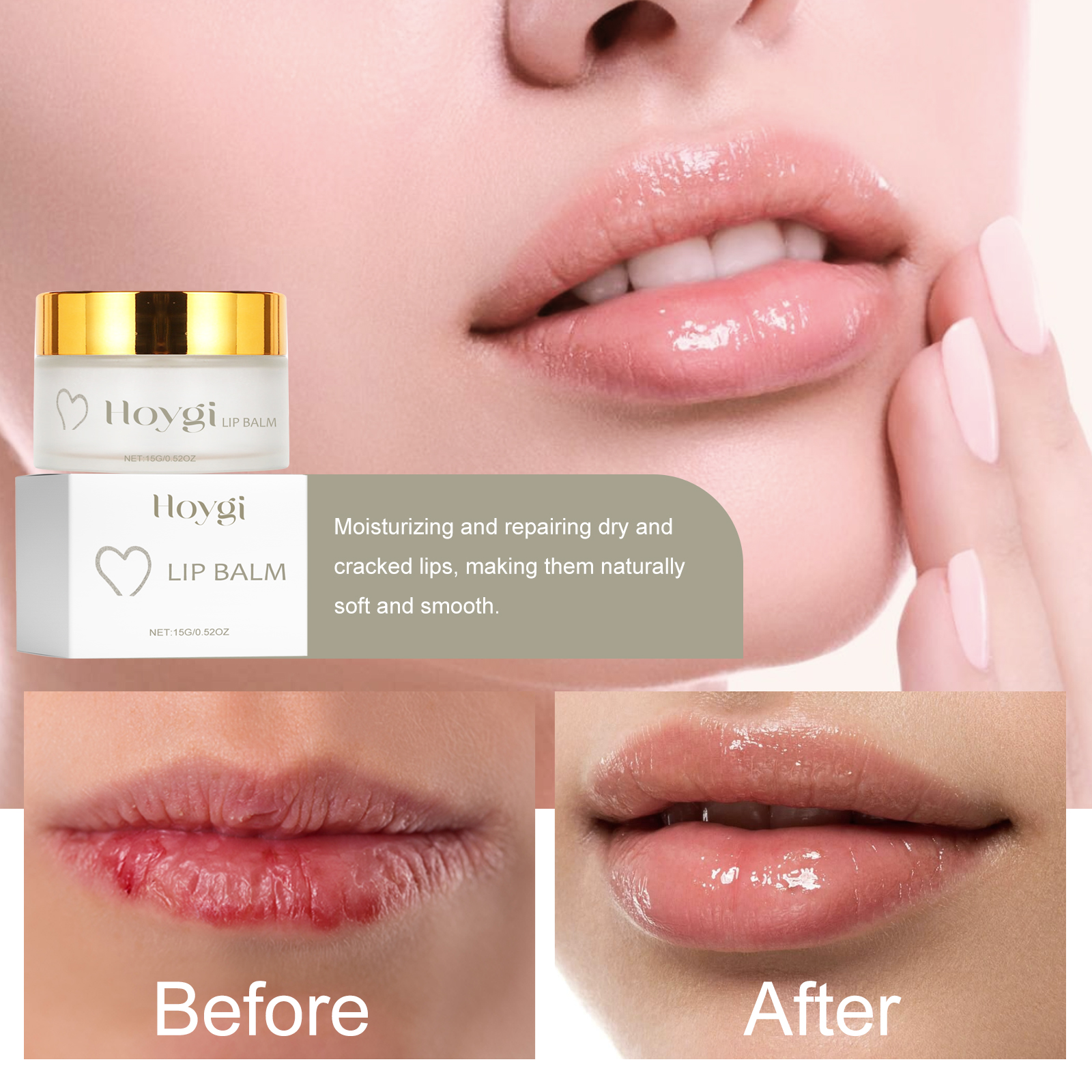Our Lip Balm contains Glycerin, Hyaluronic Acid, Simmondsia Chinensis(Jojoba)Seed Oil. It can effectively repair damaged lips, moisturize dry lips, soften lip corners, repair and improve lip lines, and brighten lip color. Its application is simple: With a clean fingertip or digging tool, gently dig out the right amount of lip balm and apply it evenly to your lips. It can penetrate the lip skin quickly, soften the keratin easily, moisturize the lip skin, brighten the lips and improve the dullness.