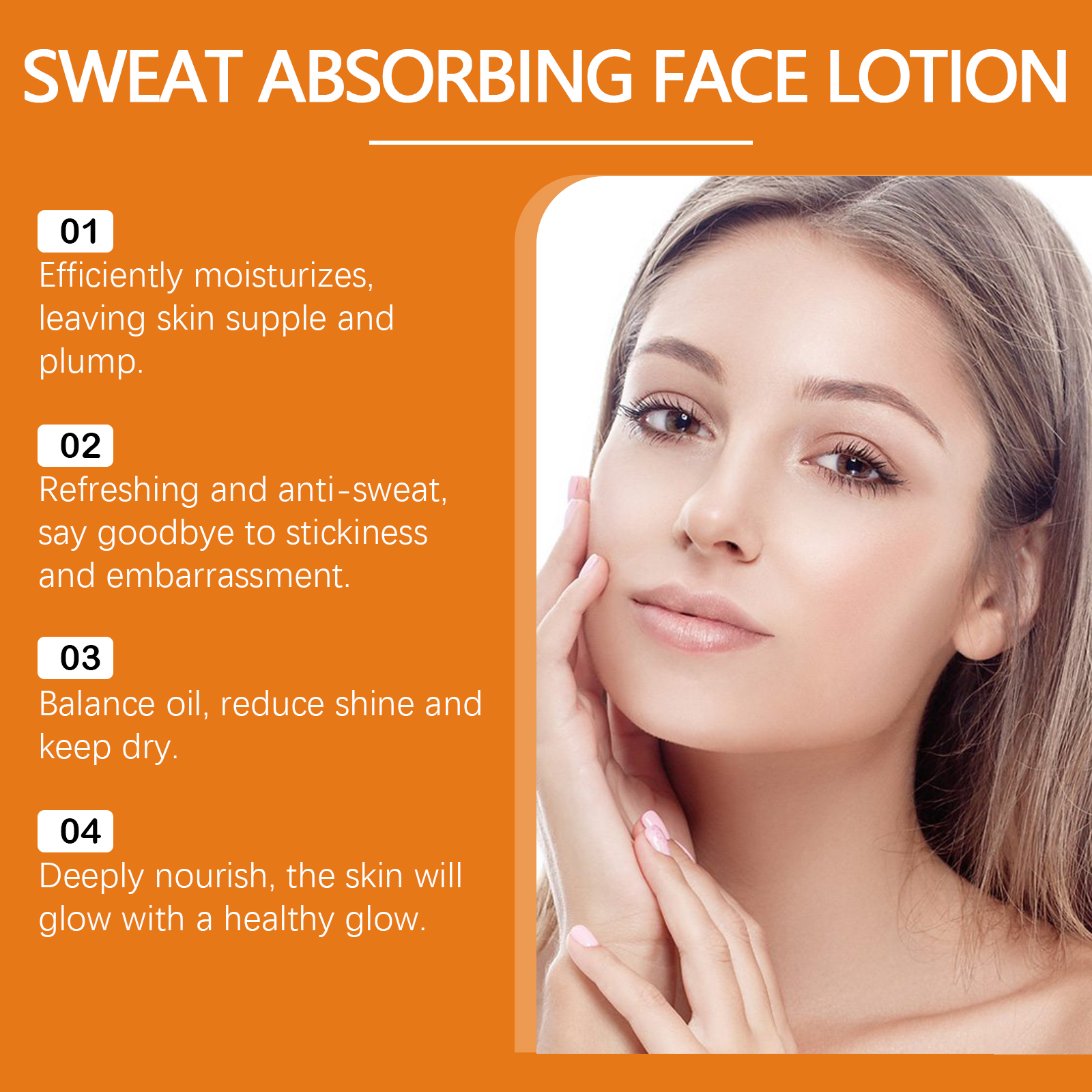 Our moisturizing anti-sweat facial lotion contains glycerin, witch hazel extract and rosemary leaf oil. It can strengthen the skin barrier and improve resistance to the external environment. Tighten pores and reduce pore size. Its application method is simple: 1. Clean and dry facial skin; 2. Apply appropriate amount of lotion evenly on the face; 3. Gently massage until absorbed. Moisturizing anti-sweat Facial lotion is gentle, non-irritating and suitable for daily use on all skin types. The fresh fragrance adds to the pleasure of use.